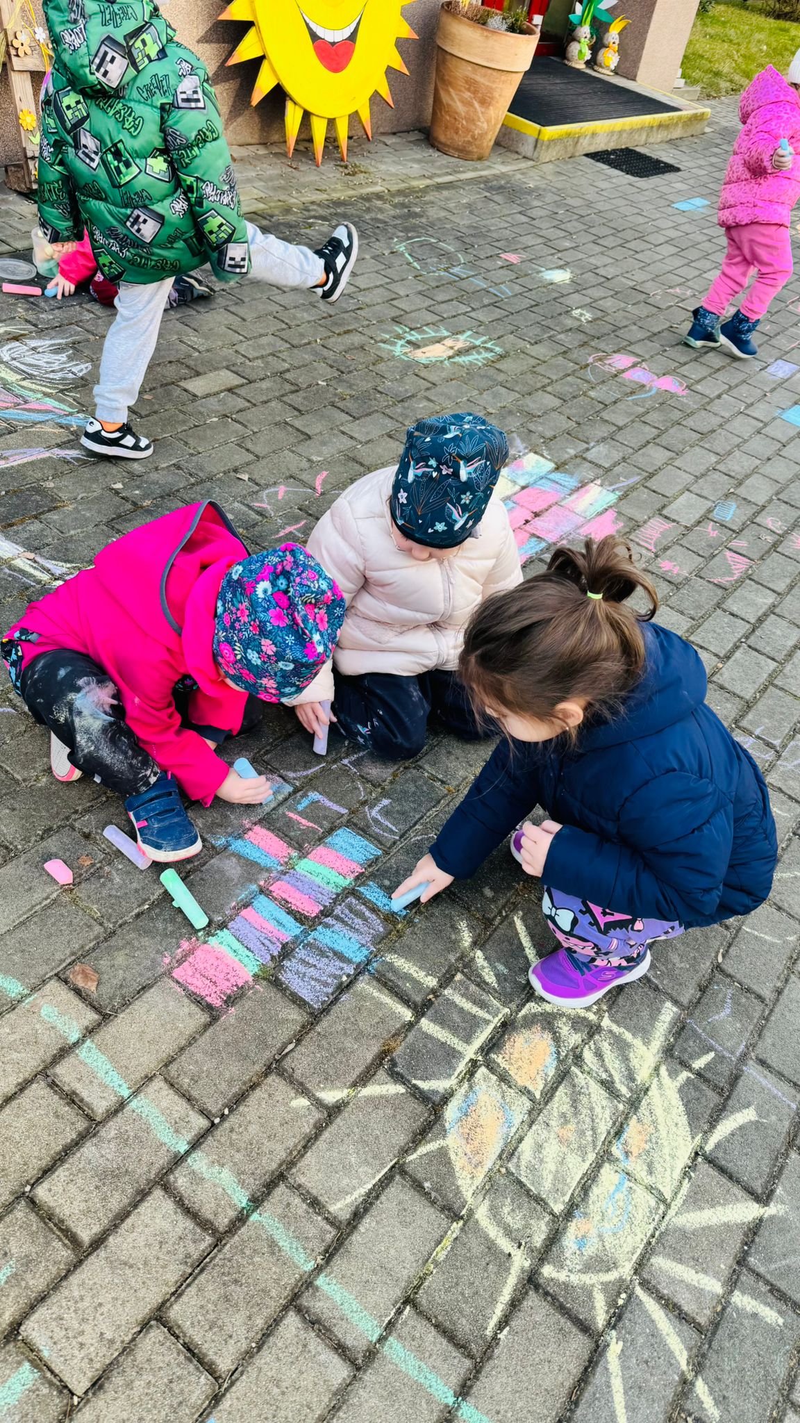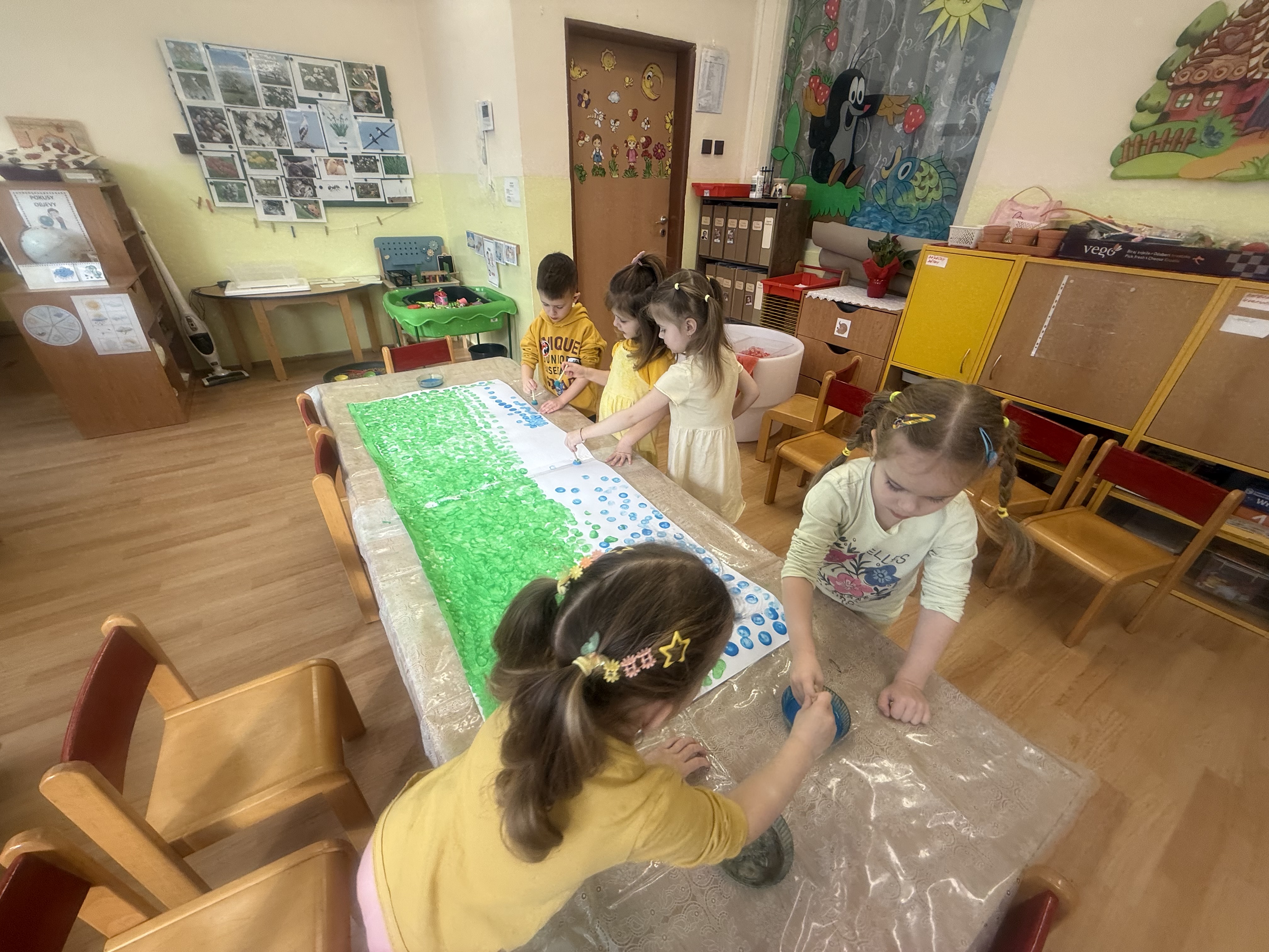 Společně s dětmi plánujeme, co všechno potřebujeme prozkoumat. Jaro jsme probouzeli pohádkou Jak sluníčko hledalo jaro.Společně jsme si naplánovali, co potřebujeme prozkoumat, co už o jaru víme a co ještě ne.Vyprávěli jsme si o předjaří a zjistili jsme jak moc je pro nás,pro rostliny,zvířata i hmyz slunce důležité.Ve středu jsme se oblékli do sluníčkové barvy-měli jsme žlutý den.Naučili jsme se novou písničku Už je březen.Sluníčka jsme nakreslili křídami i před naší školku.Venku jsme pozorovali jak se budí jaro v přírodě. Před školkou nám jaro probudilo první sněženky.S Jůlinkou jsme oslavili narozeniny.
