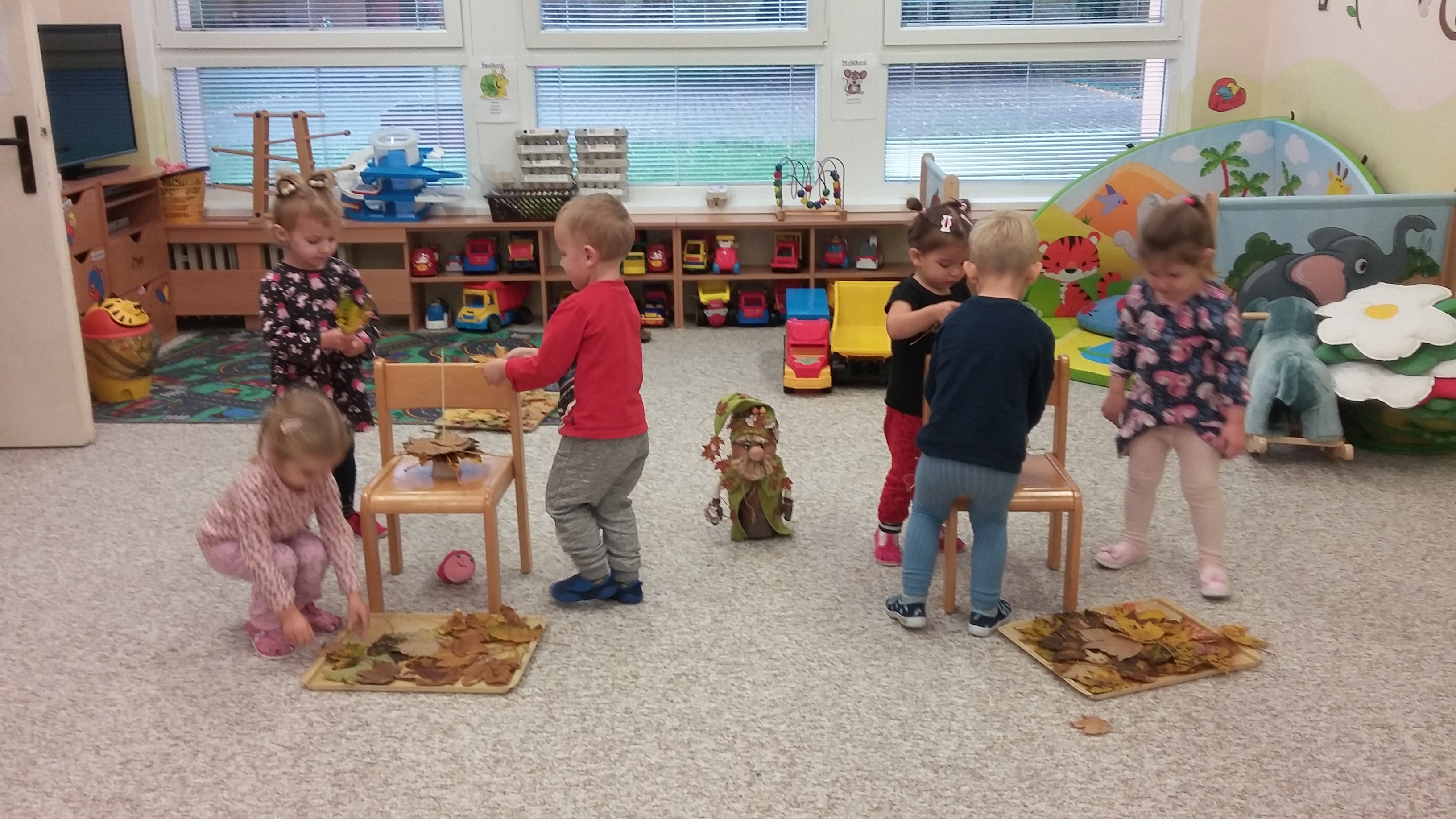 Přišel za námi skřítek a jmenuje se Podzimáček. Povídáme si s ním o tom, jak se příroda připravuje k odpočinku. My mu zase ukazujeme, jak si už umíme hrát a tvořit z přírodnin.