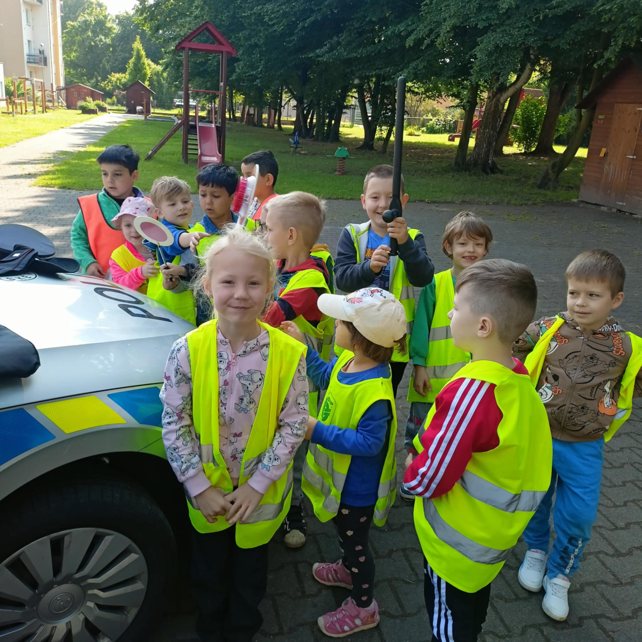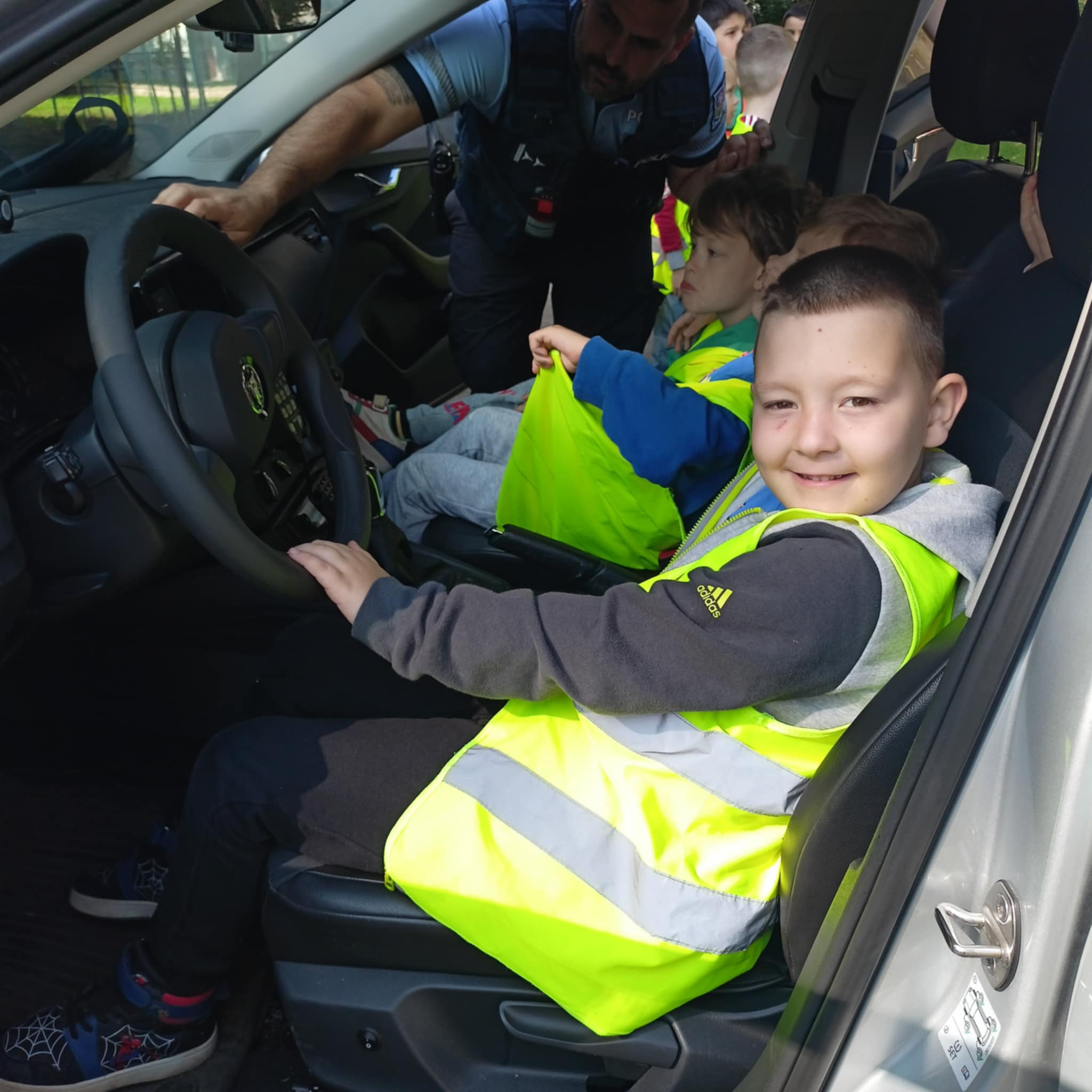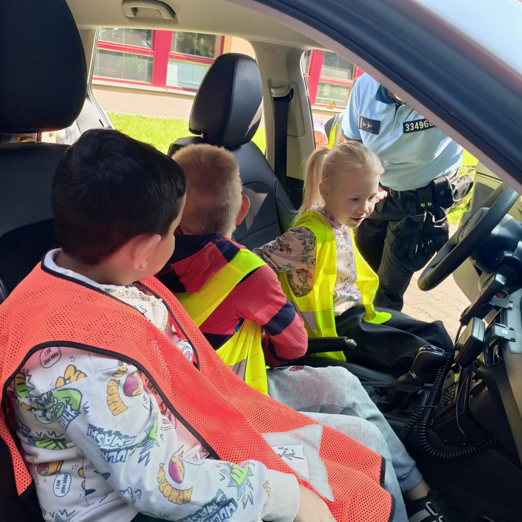 17.6.2025 zavítala do naší školky POLICIE ČR. Děti se seznámily s tím, jak se správně chodí po chodníku a bezpečně přechází přes silnici. Poté policistka dětem ukázala některé části výstroje a vybavení policistů, jako třeba reflexní a neprůstřelnou vestu, nebo zastavovací terčík. Největší dojem však na děti udělal obušek a policejní pouta, která si ti nejodvážnější vyzkoušely. Na úplný závěr si děti mohly prohlédnout policejni auto a vyzkoušet policejní majáky. Akce se velmi vydařila a dětem se moc líbila.