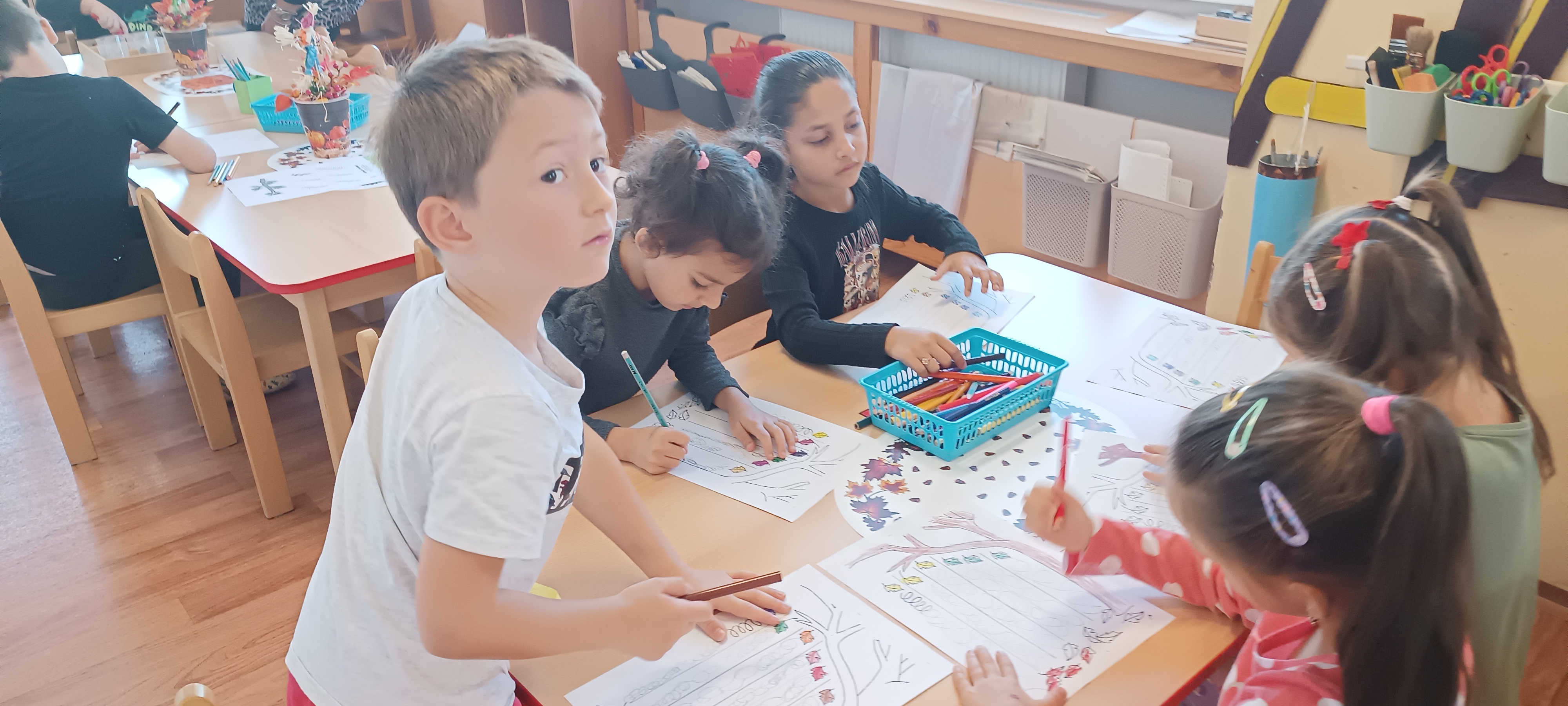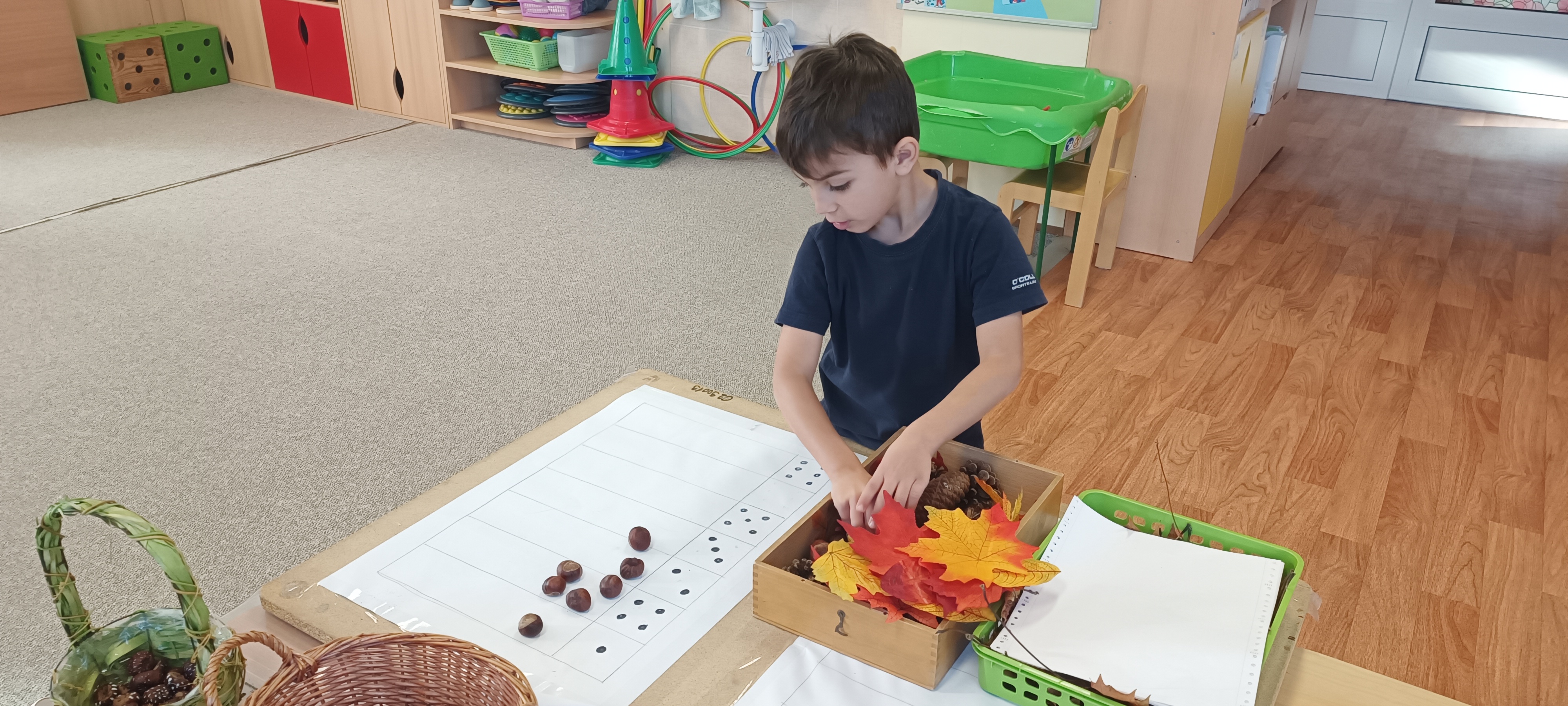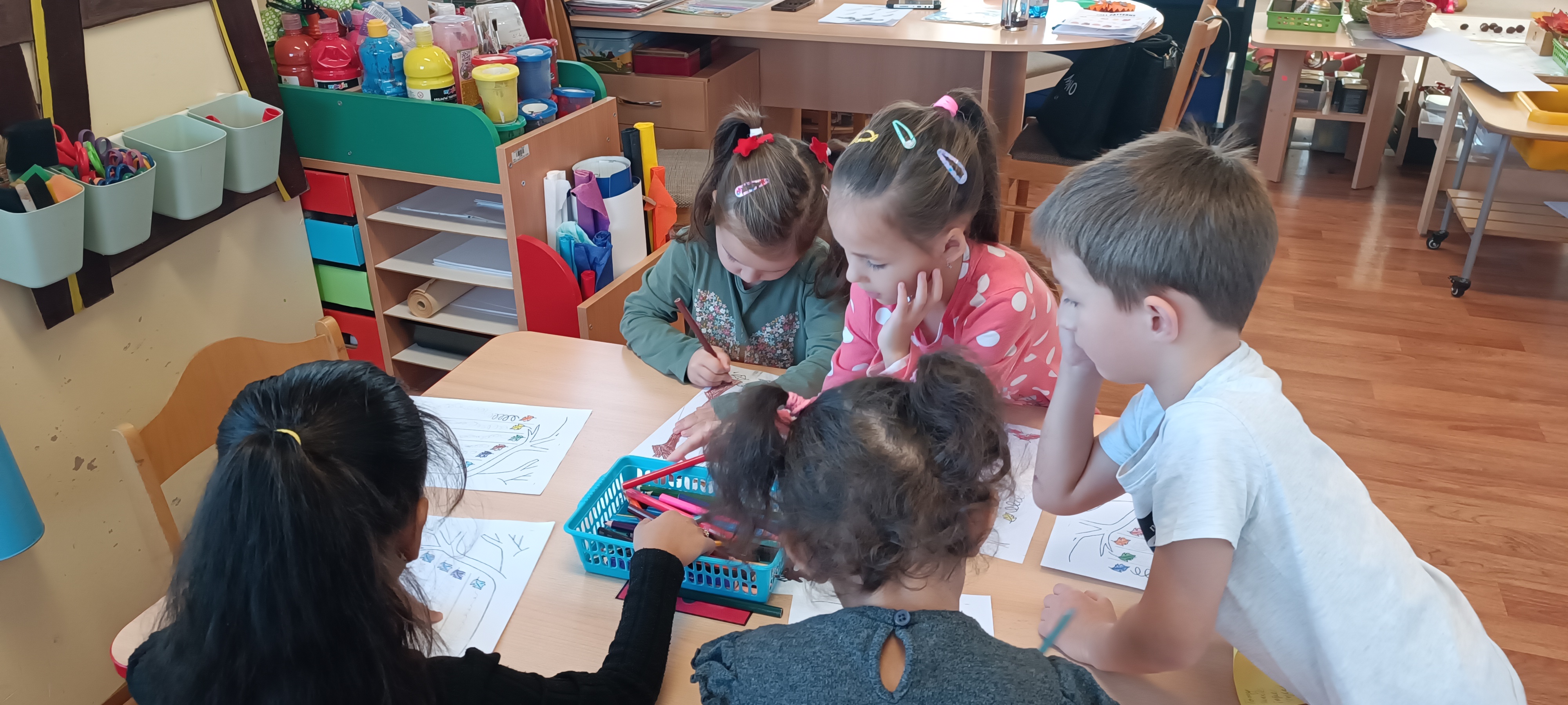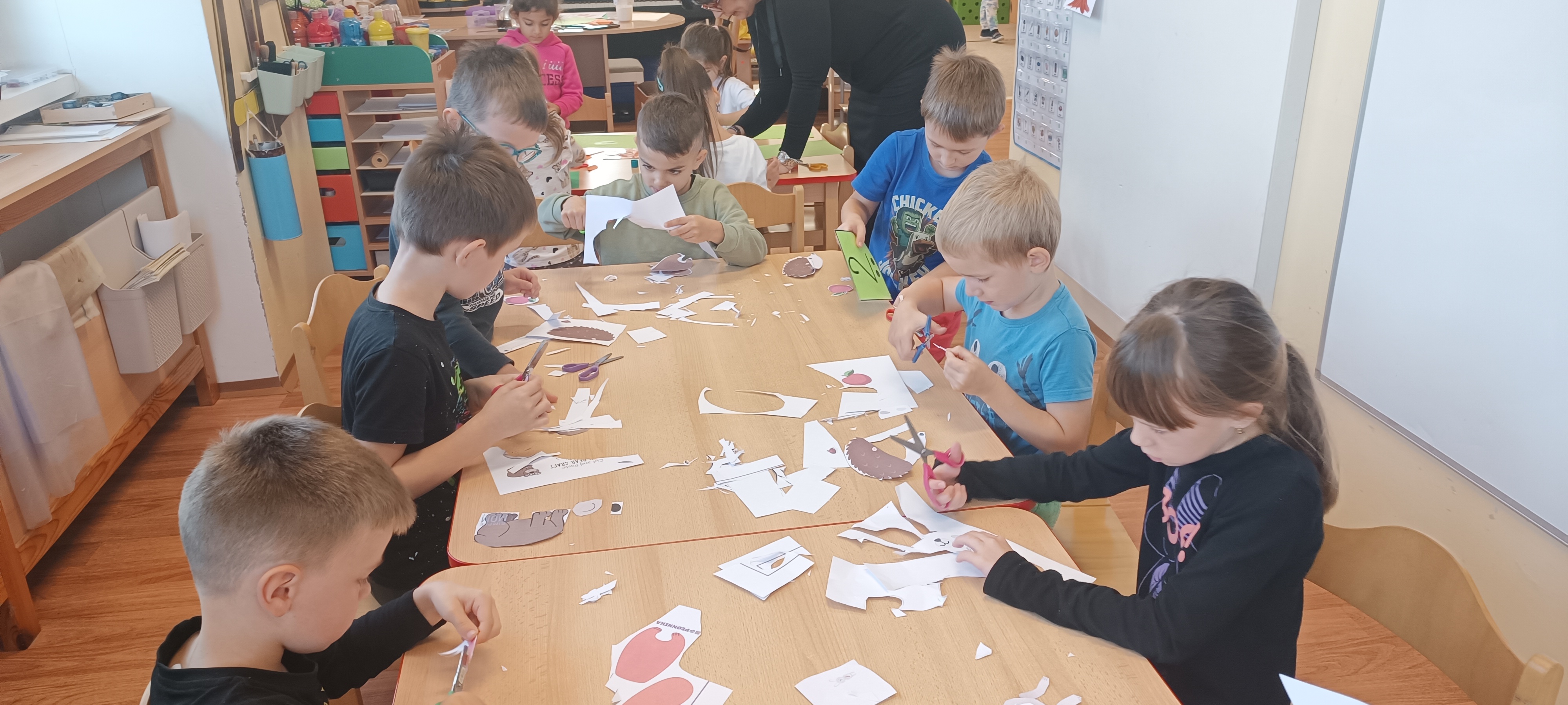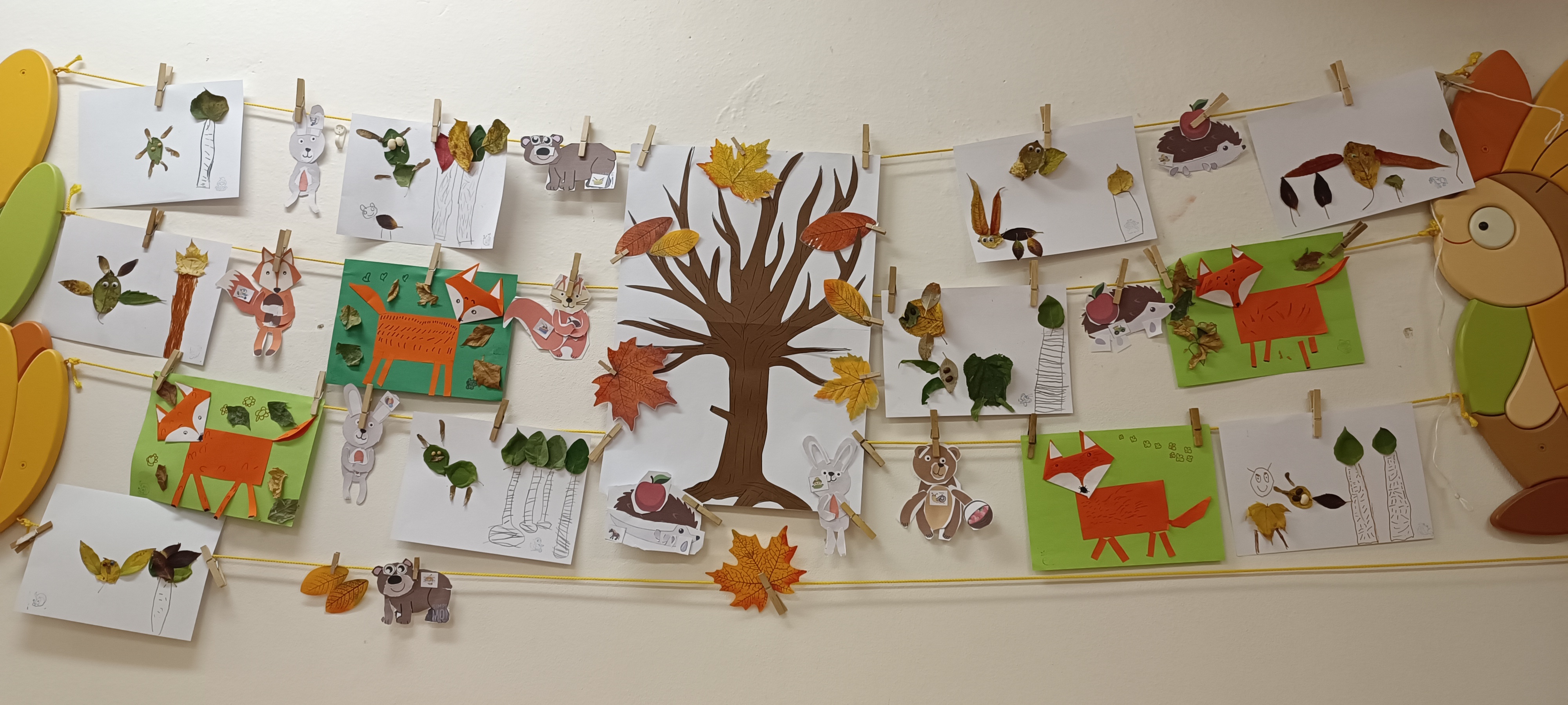 tvoříme se všemi dětmi velký podzimní obraz v naší šatně.