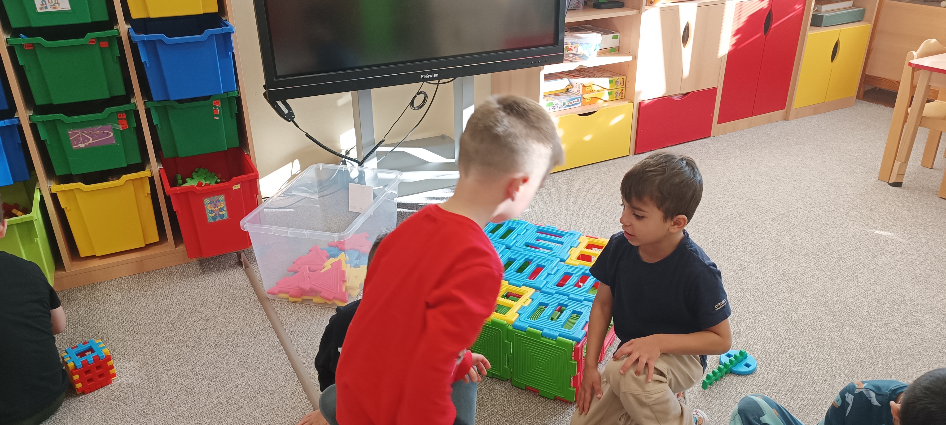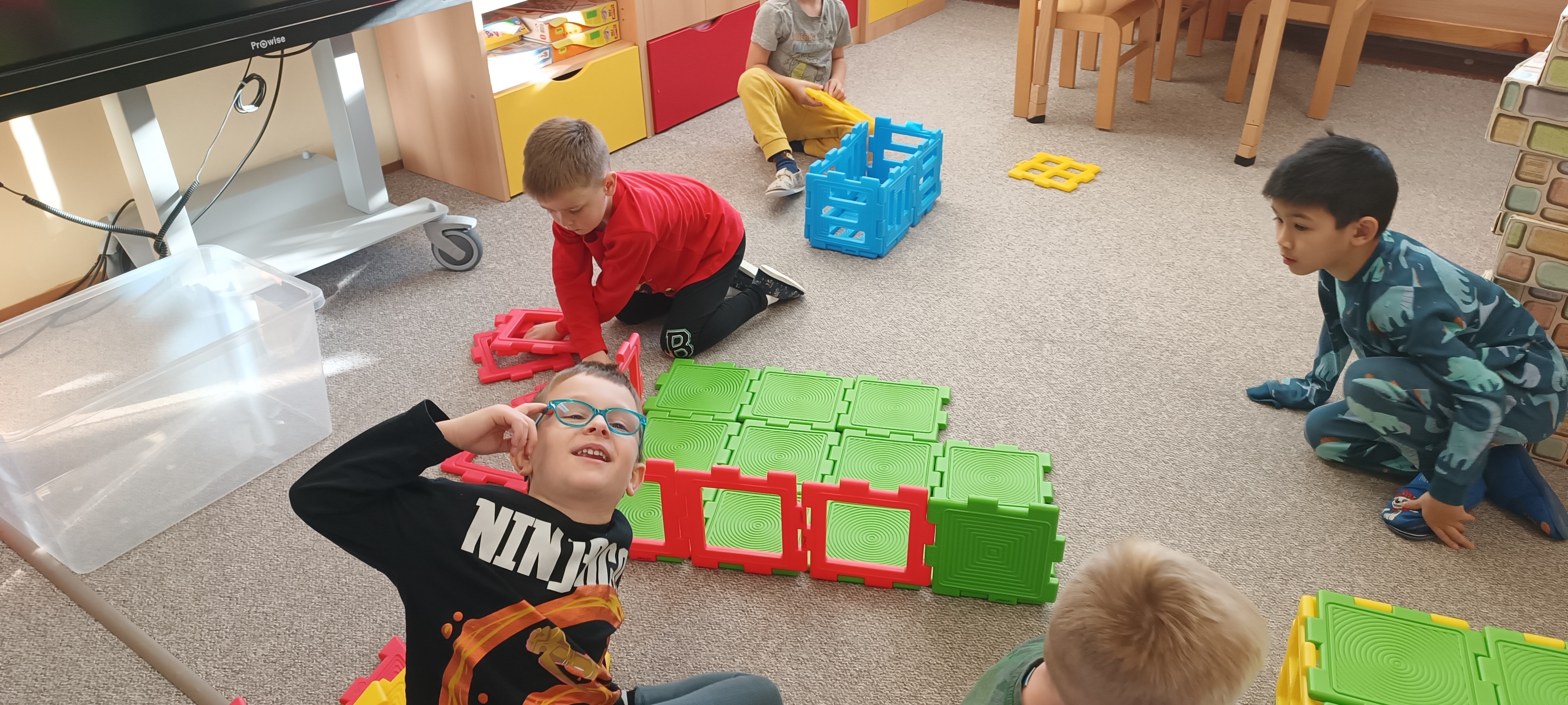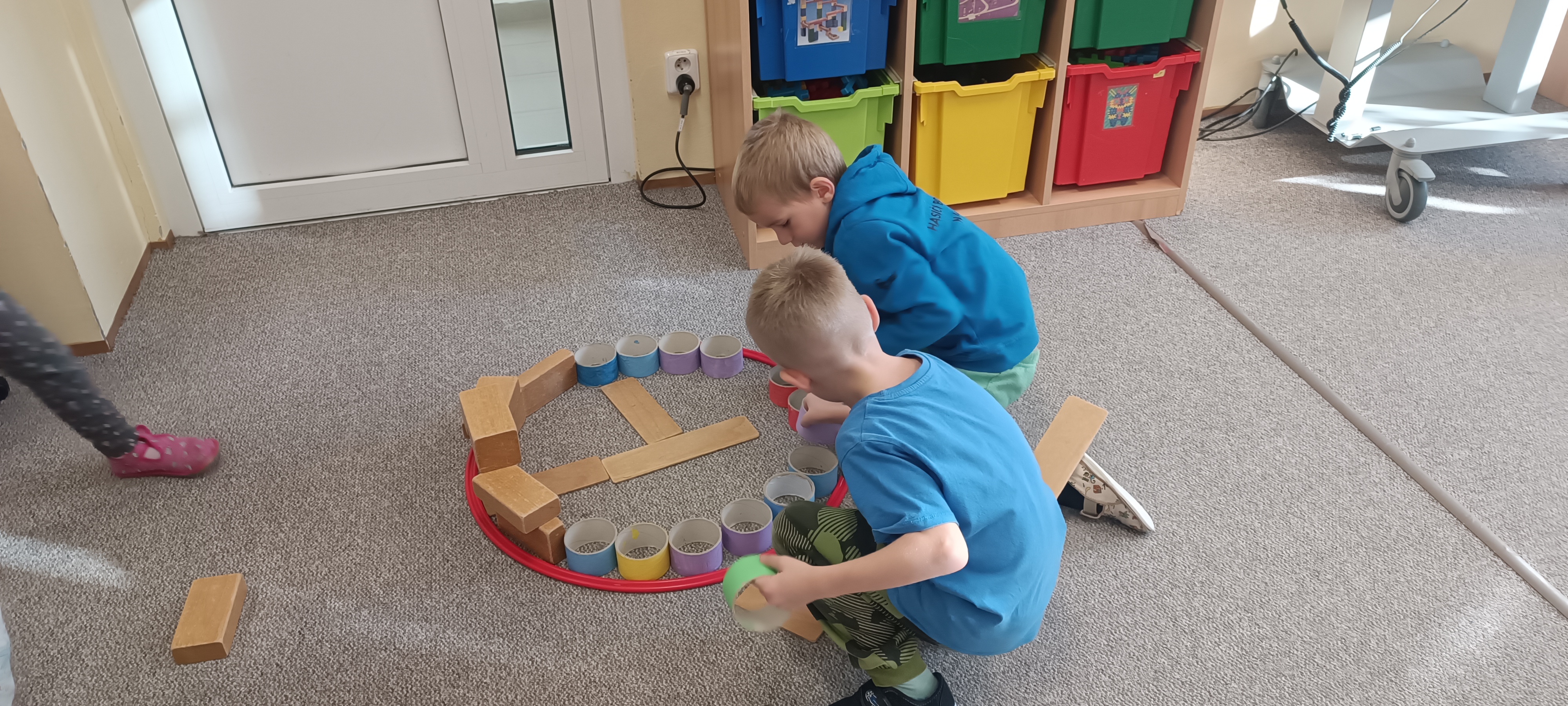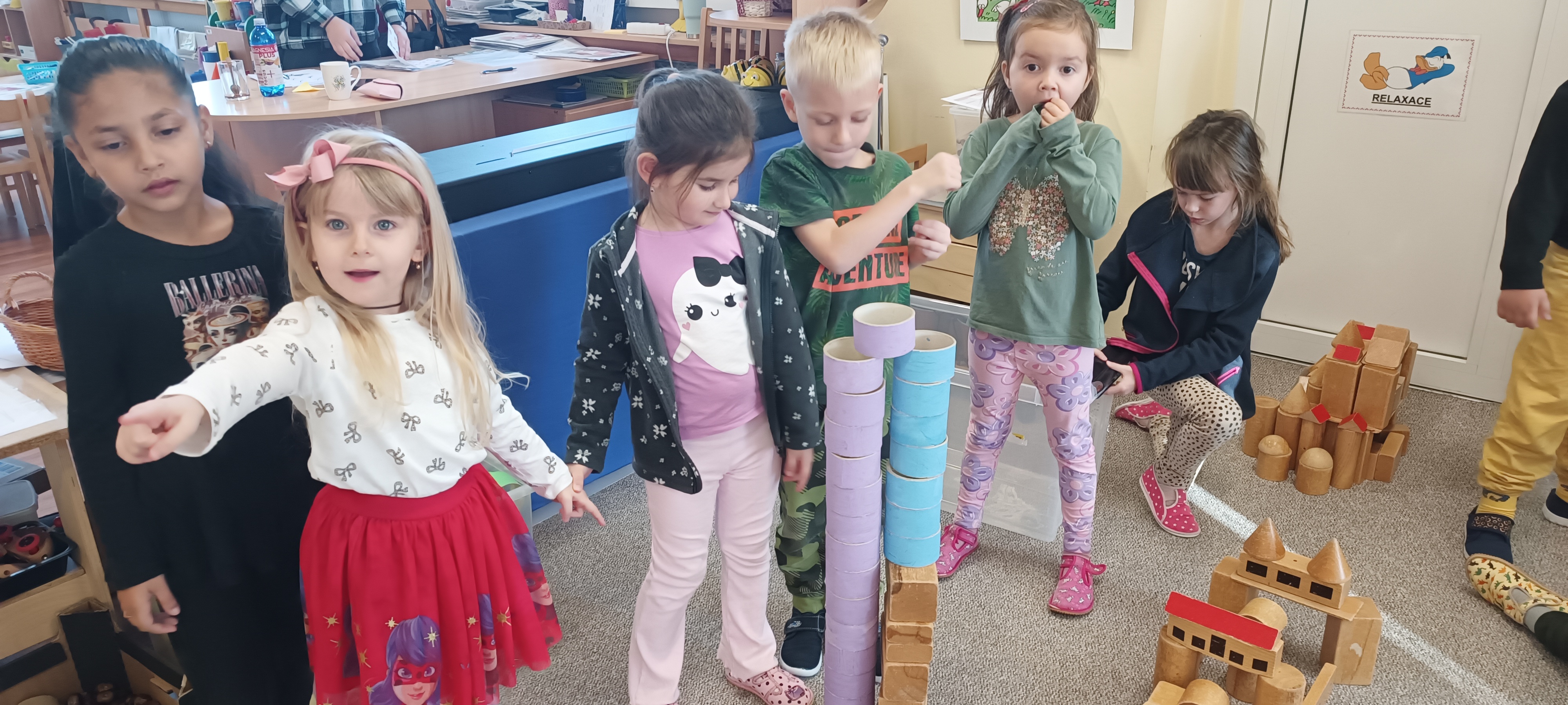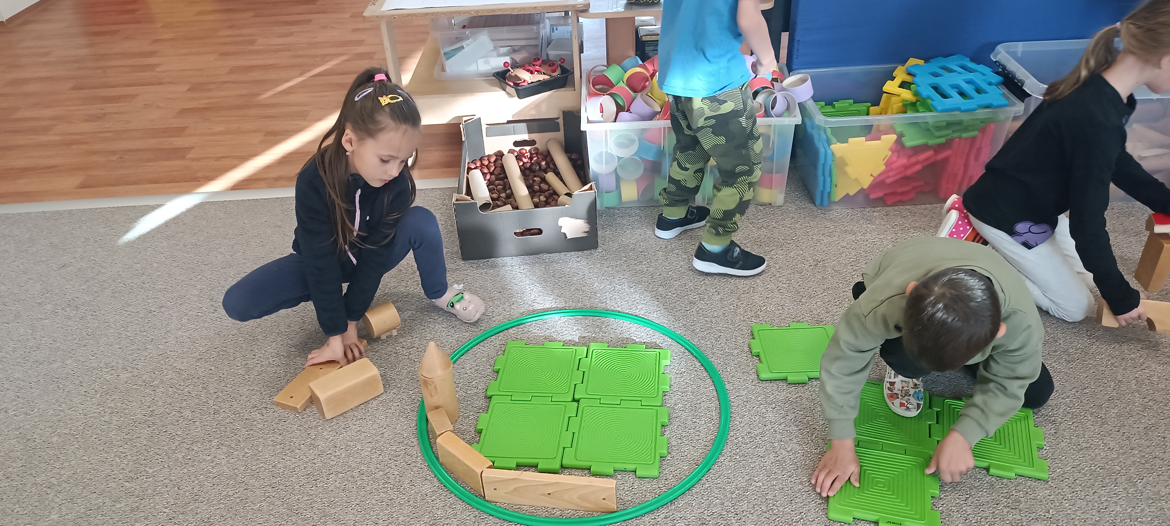 tvoříme se všemi dětmi velký podzimní obraz v naší šatně.