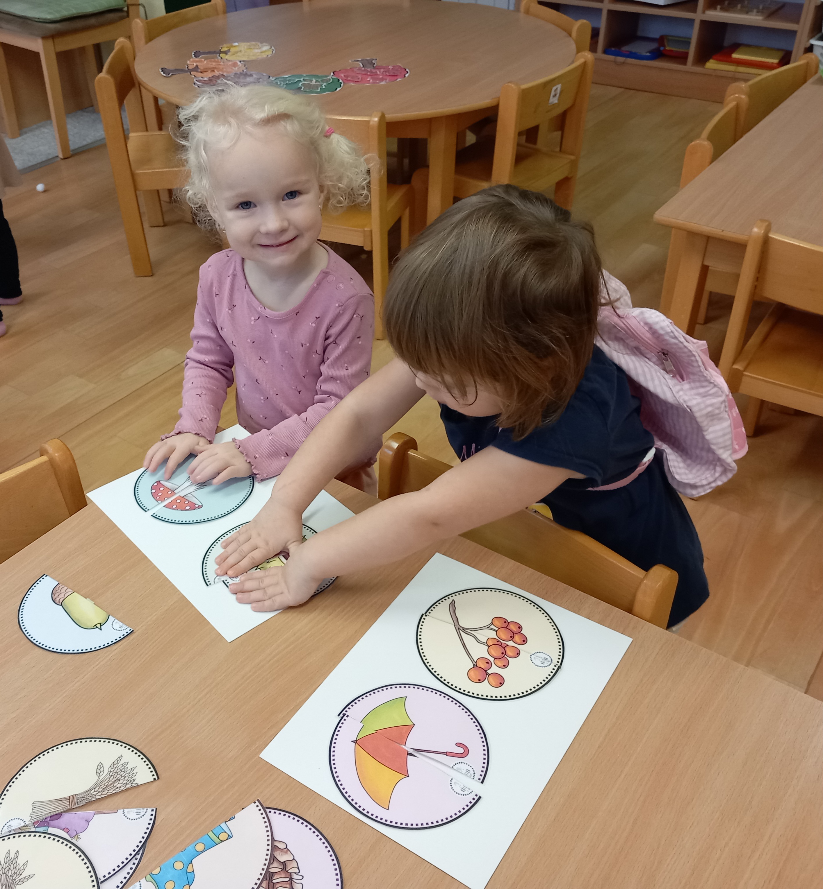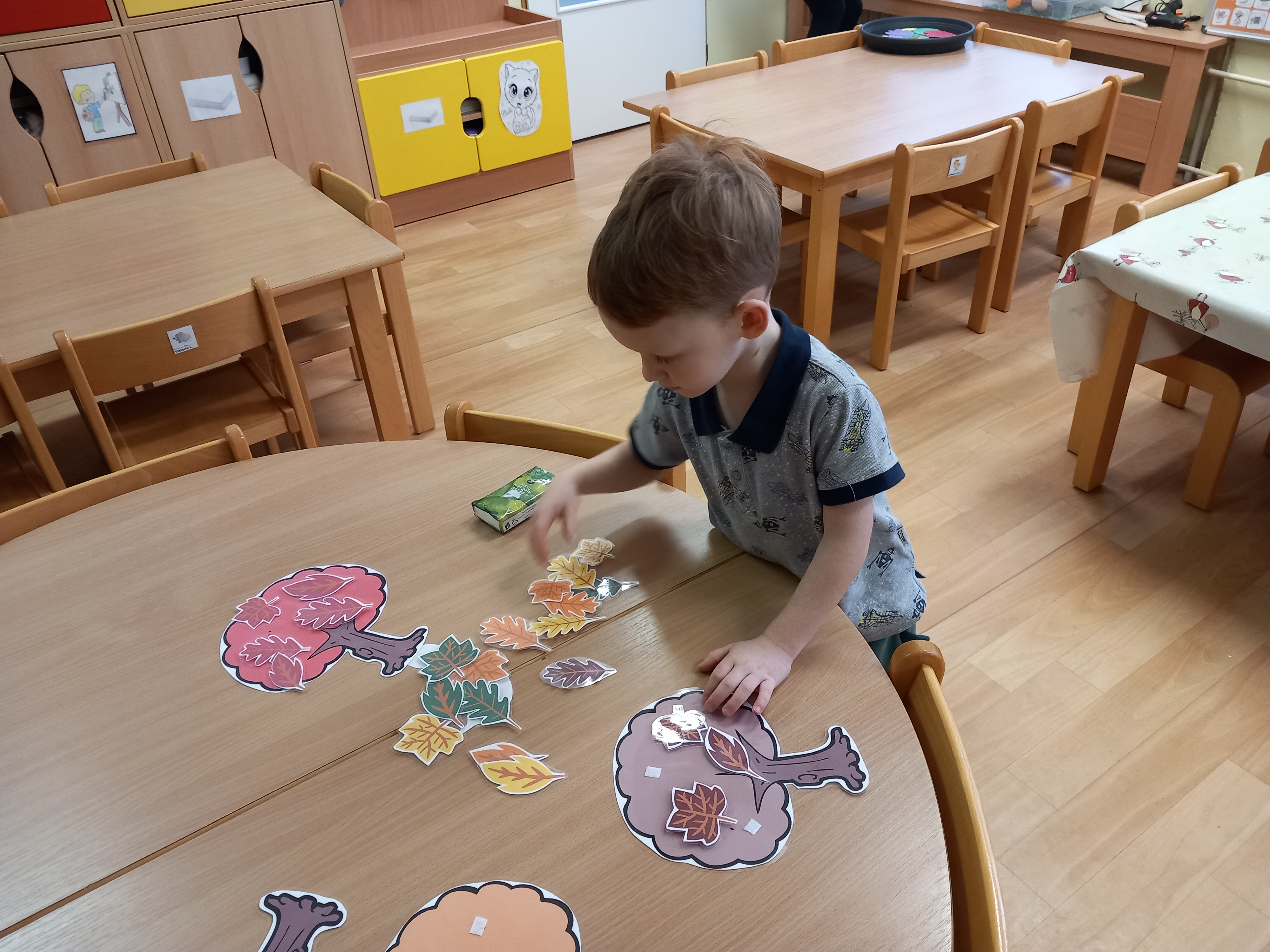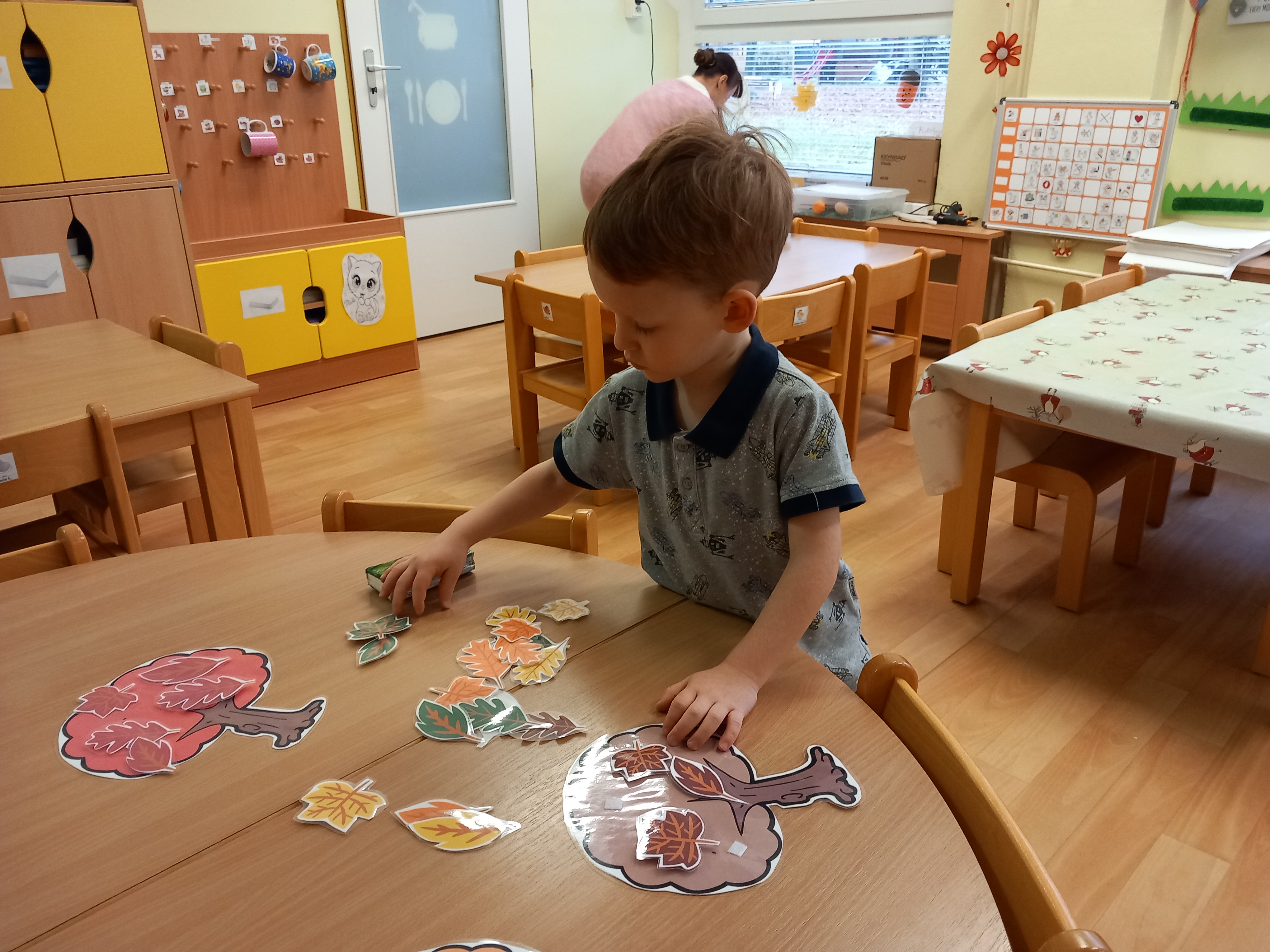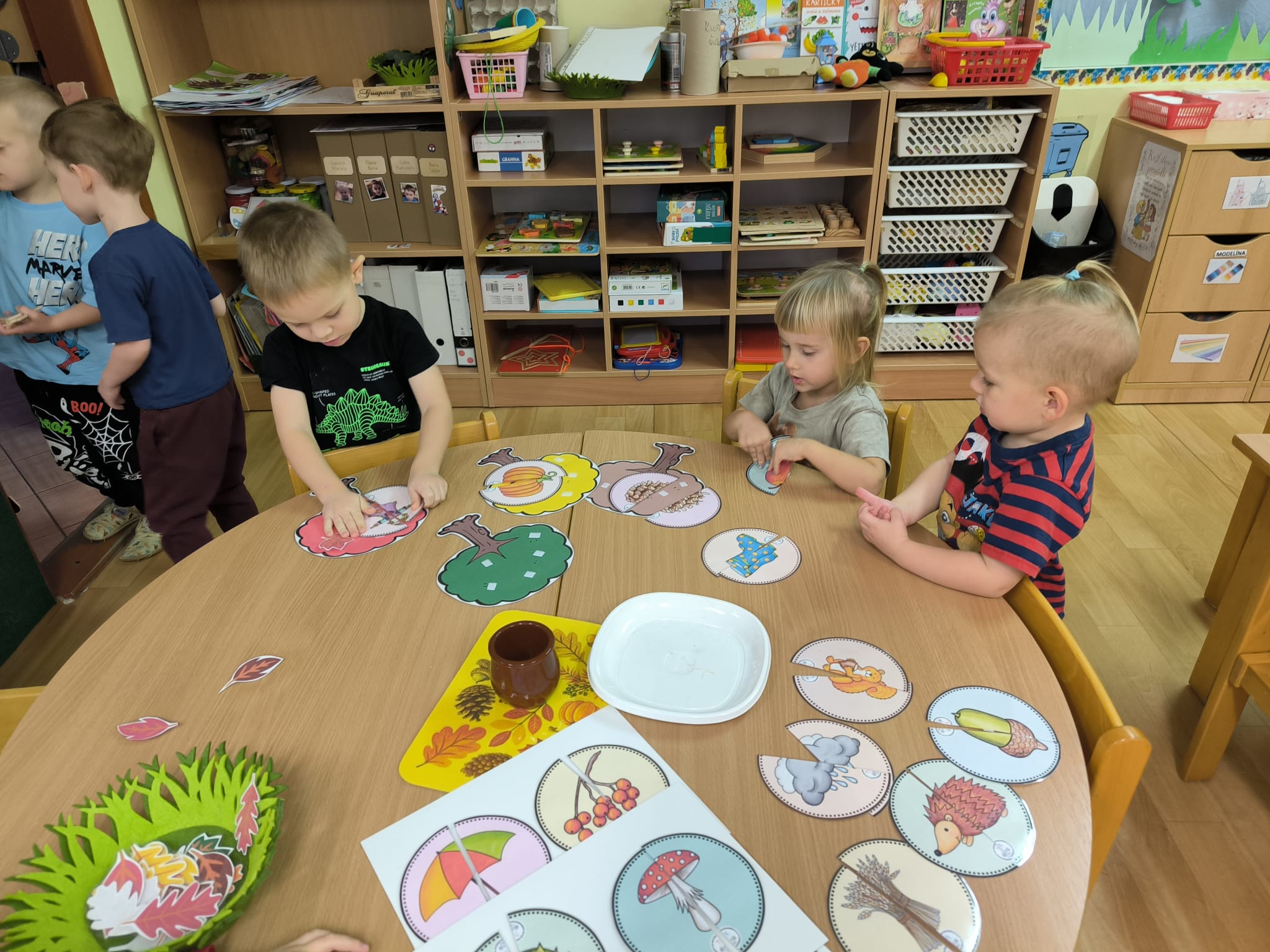 skládaly rozpůlené obrázky, přiřazovaly na filcové a papírové stromy lístečky
