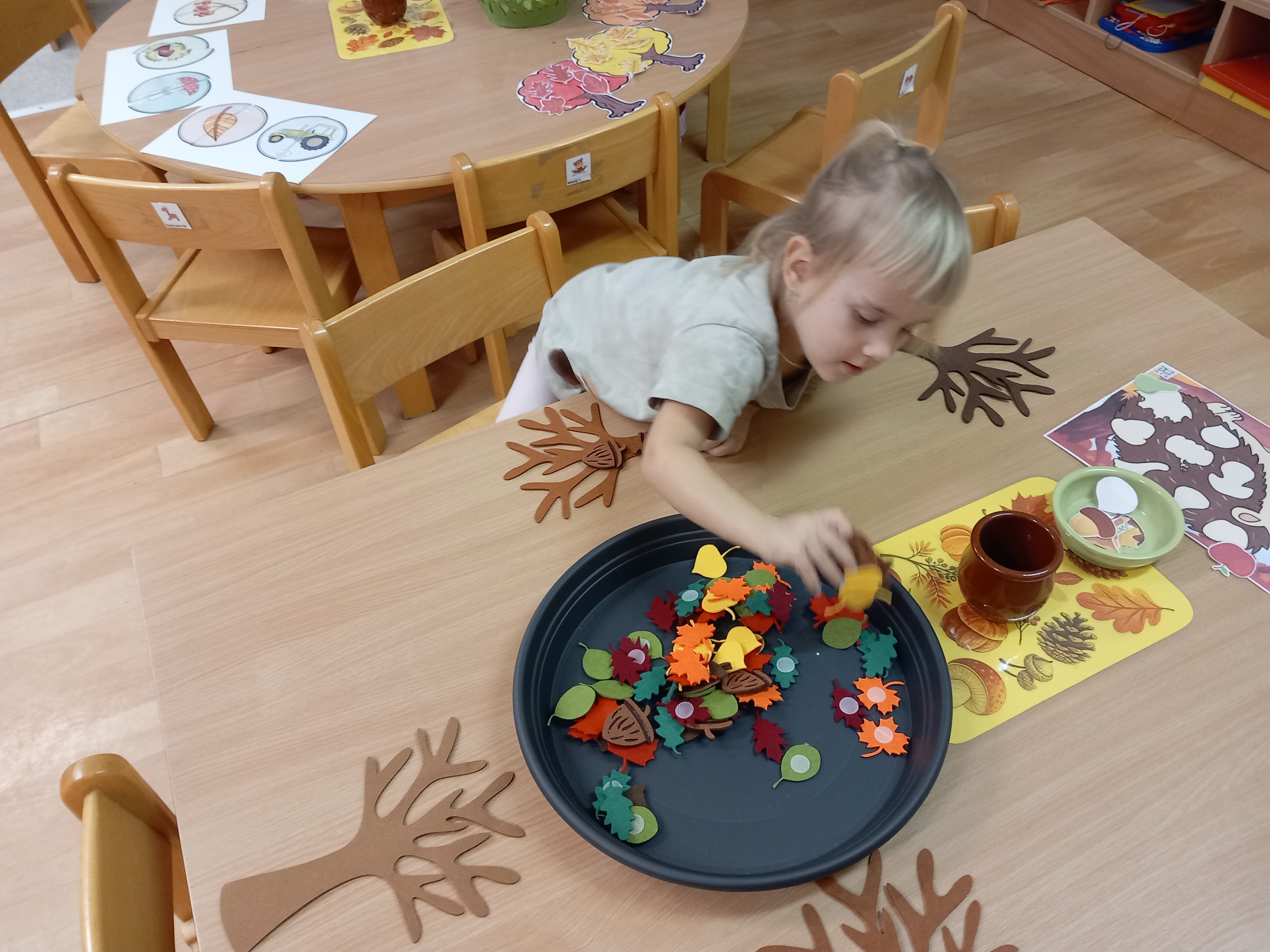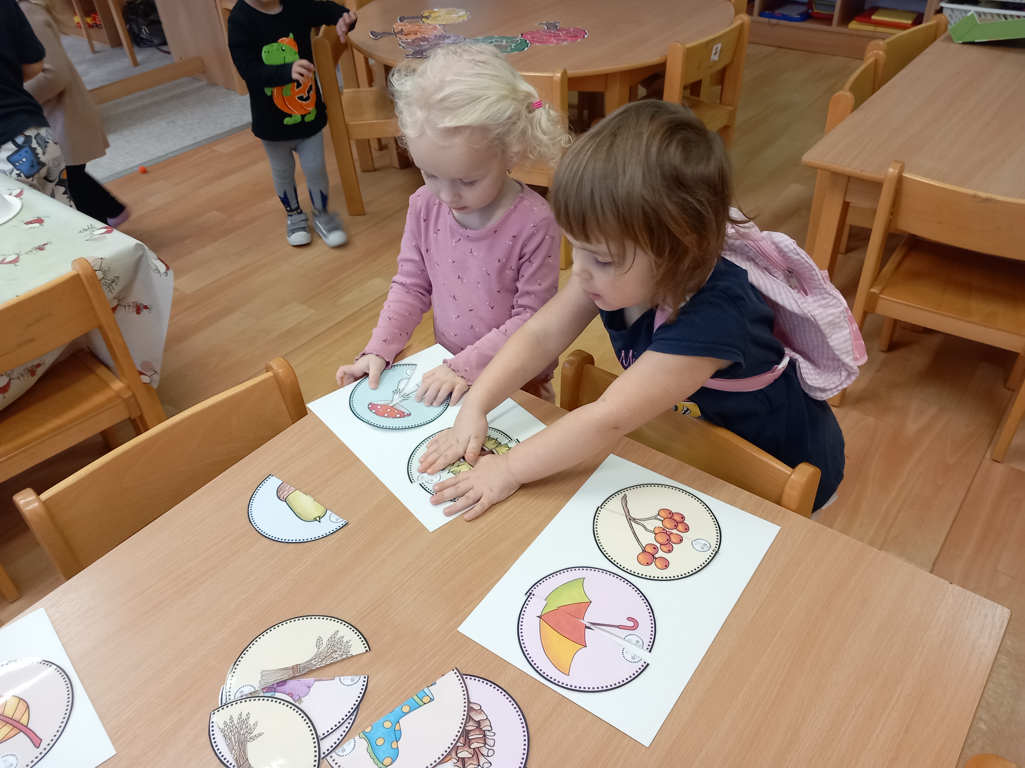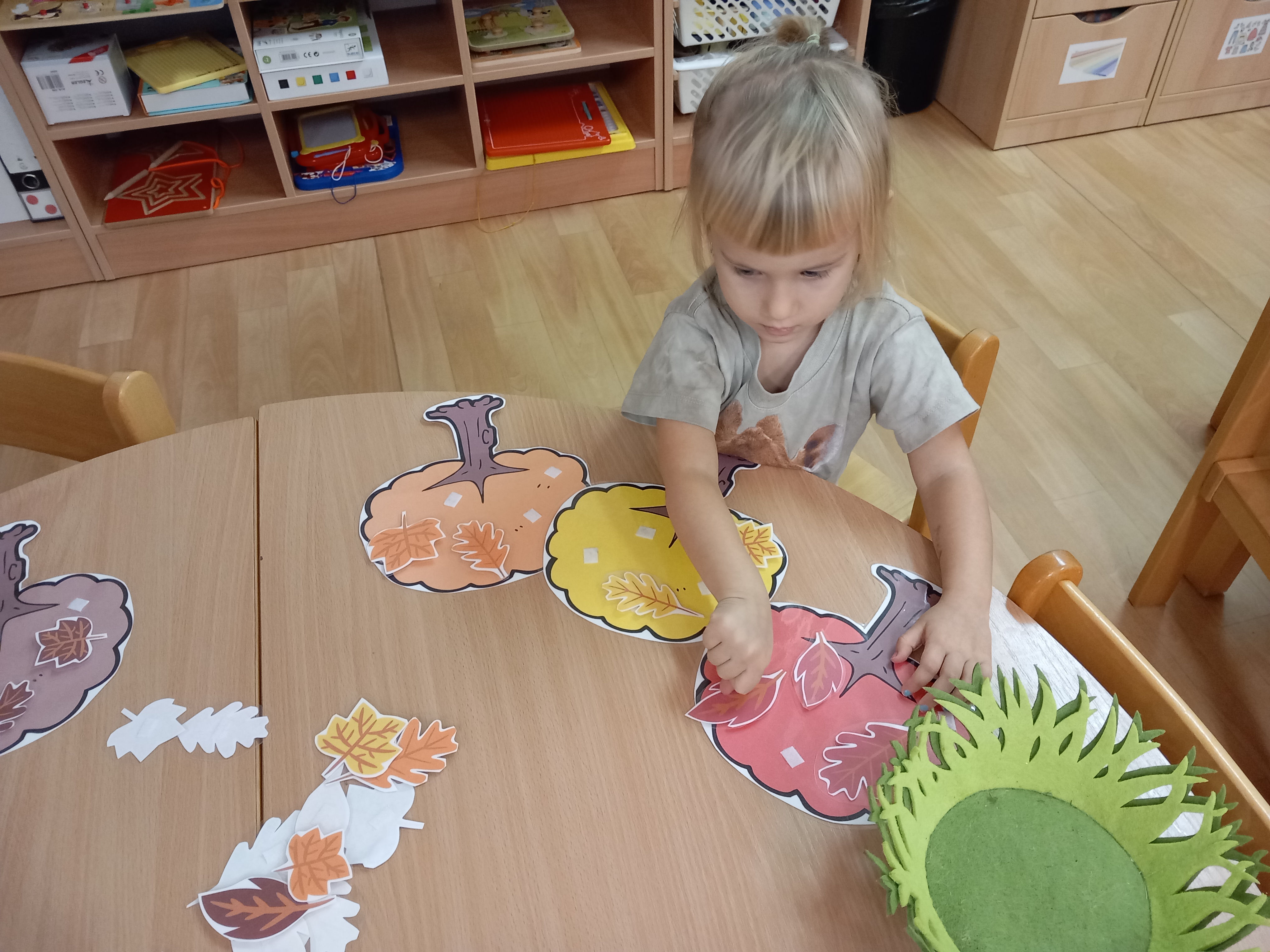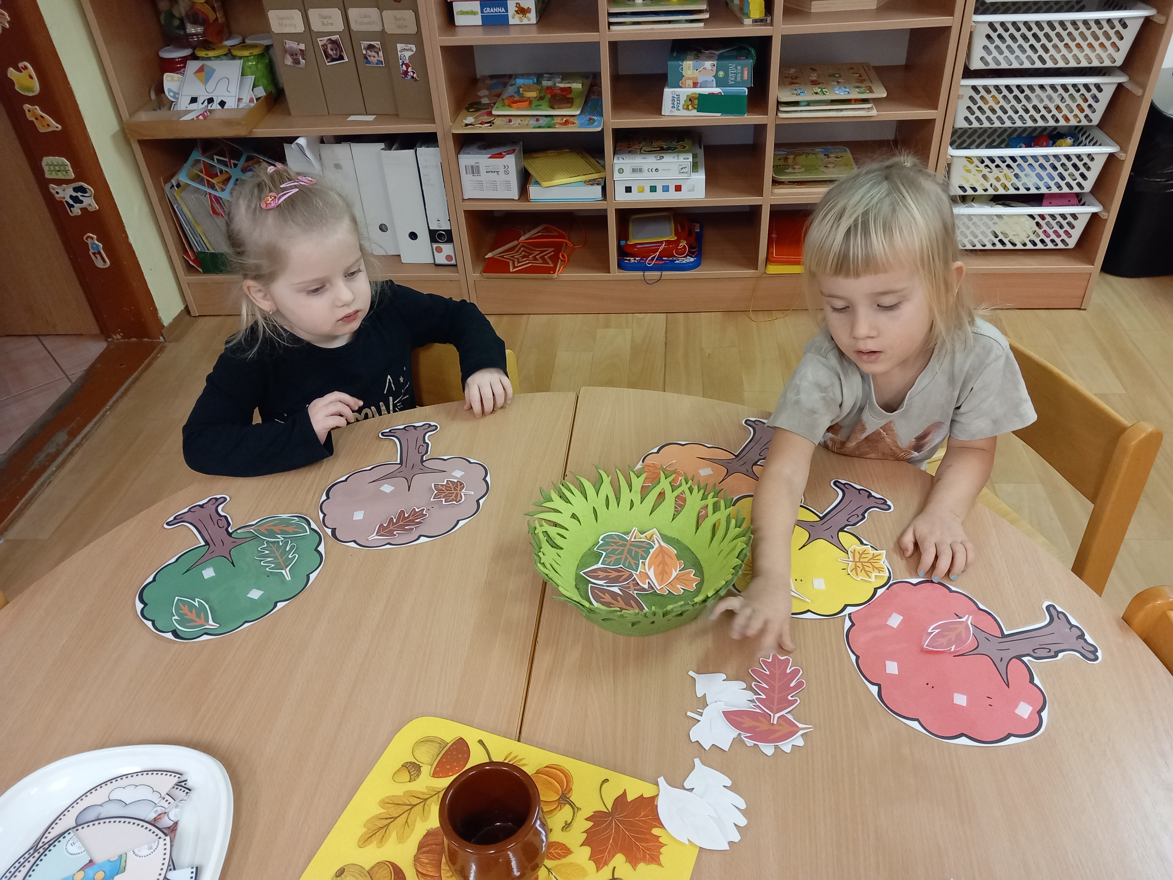 skládaly rozpůlené obrázky, přiřazovaly na filcové a papírové stromy lístečky
