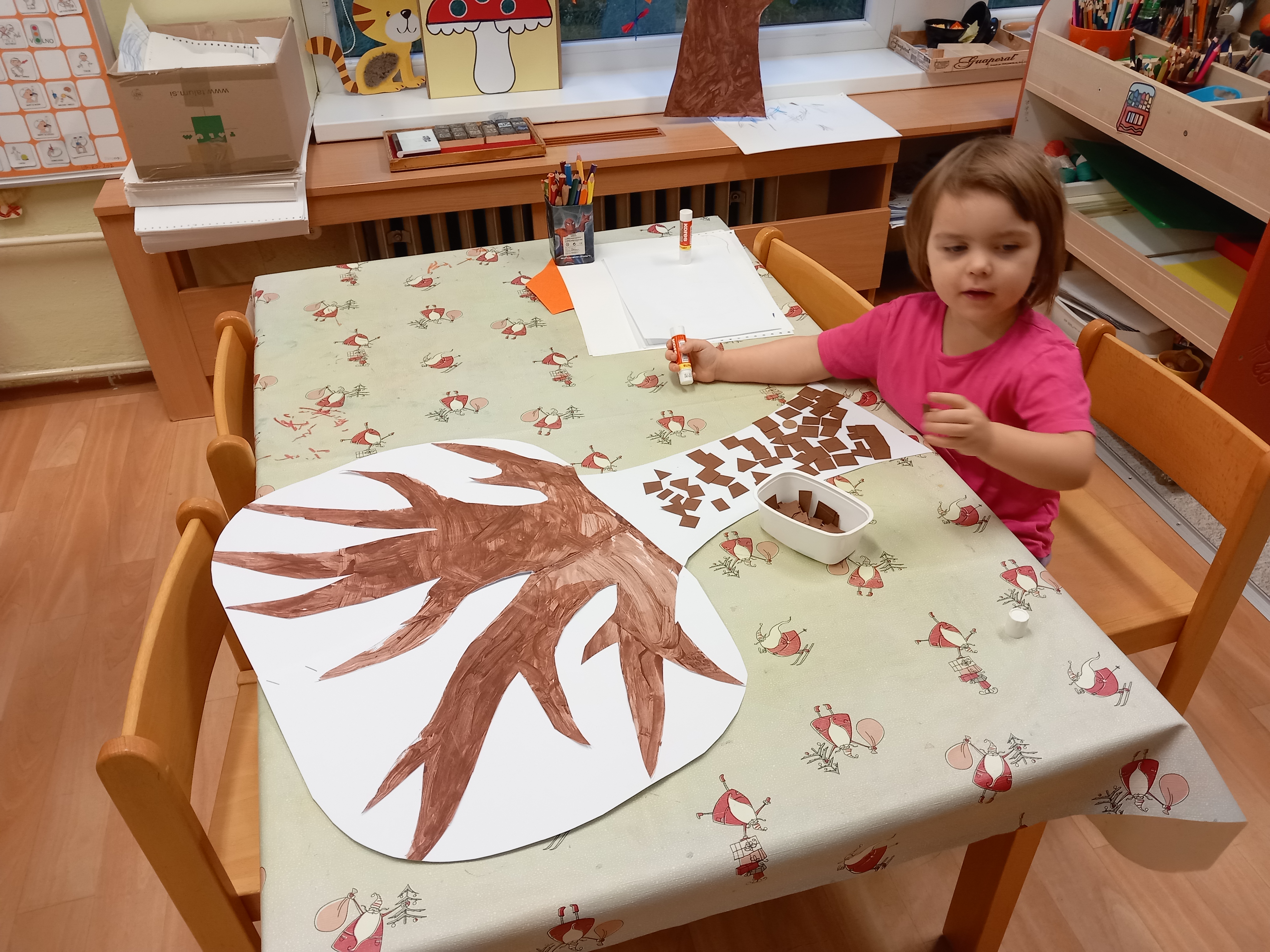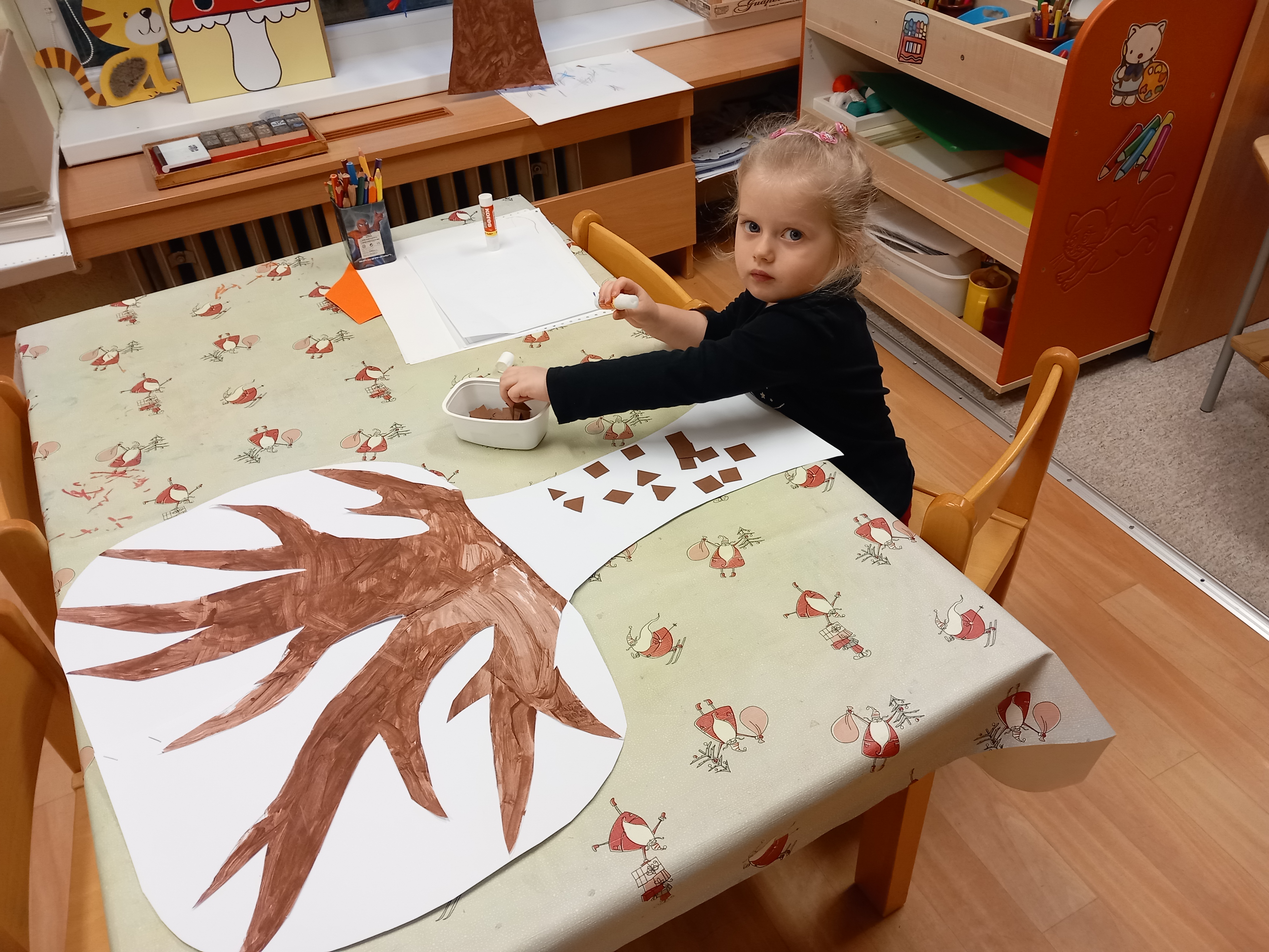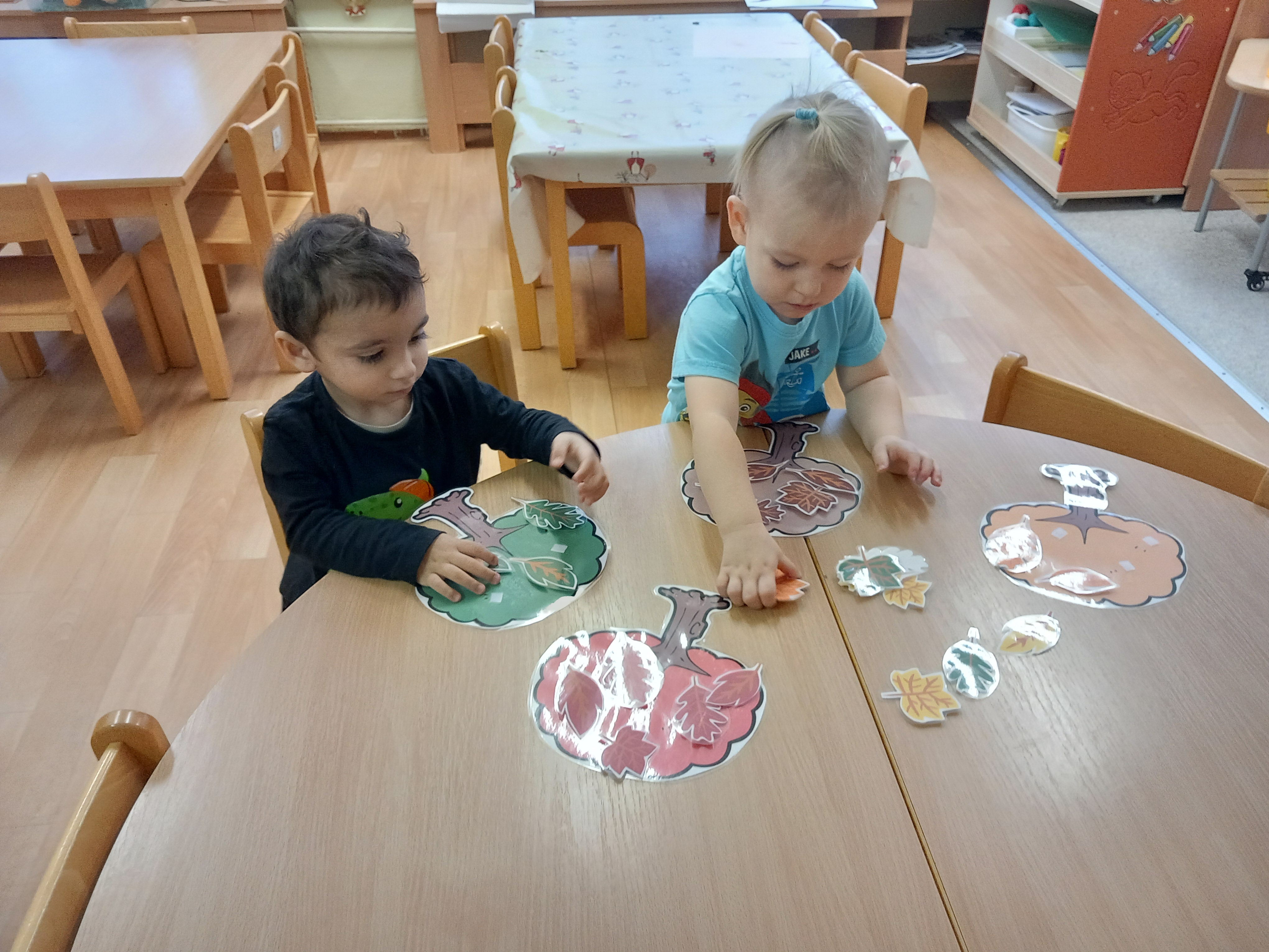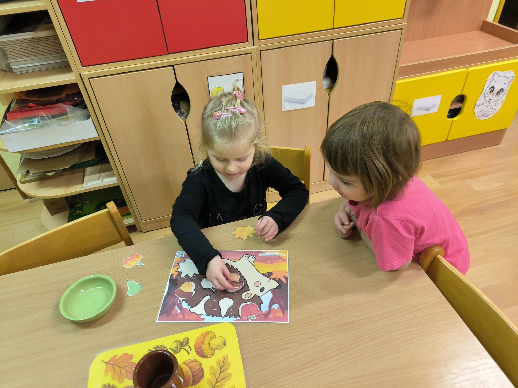 skládaly rozpůlené obrázky, přiřazovaly na filcové a papírové stromy lístečky