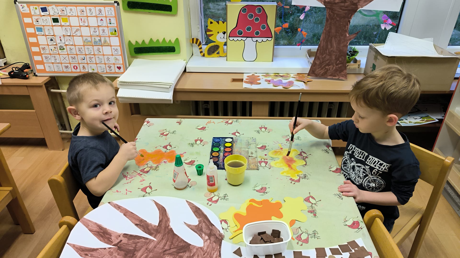 a hlavně samy malovaly listy jako skřítek Podzimníček.