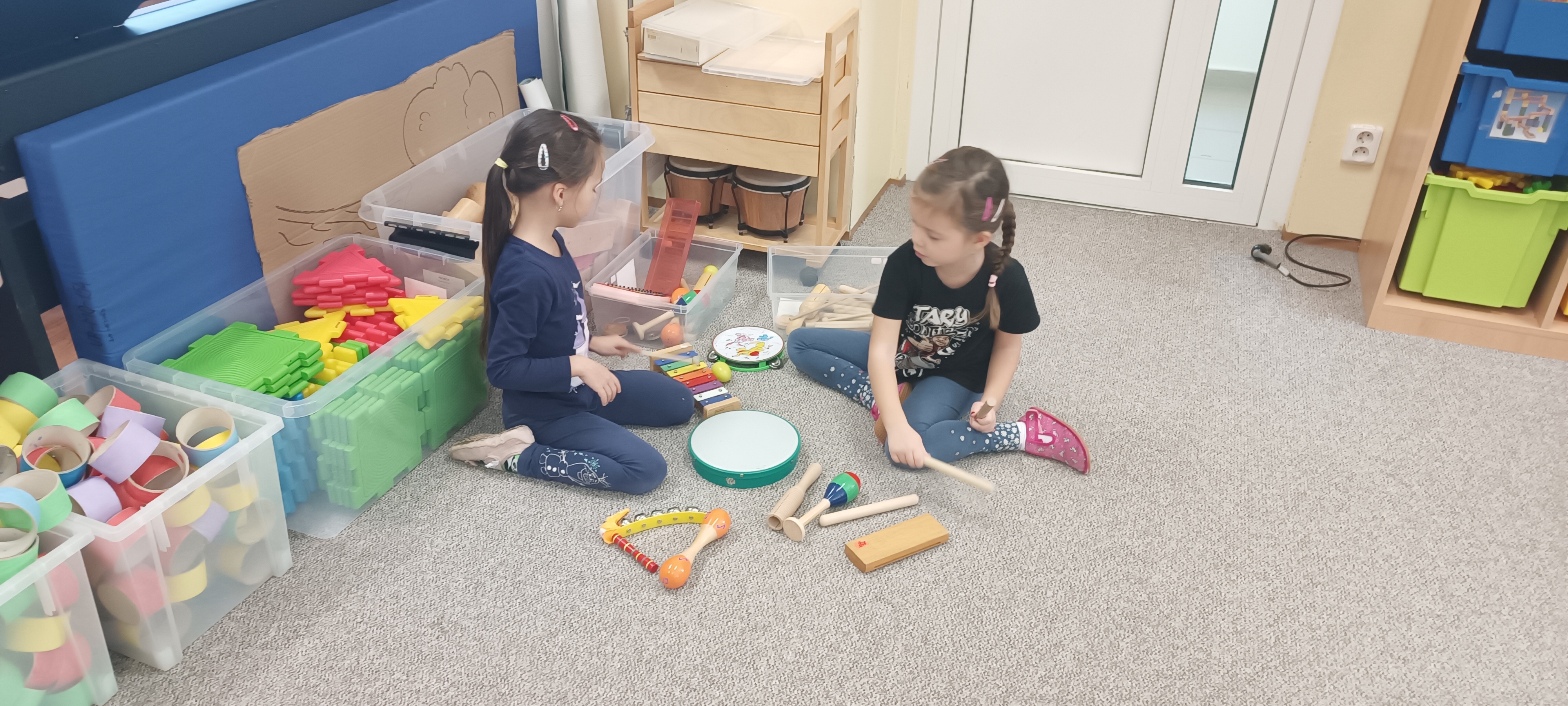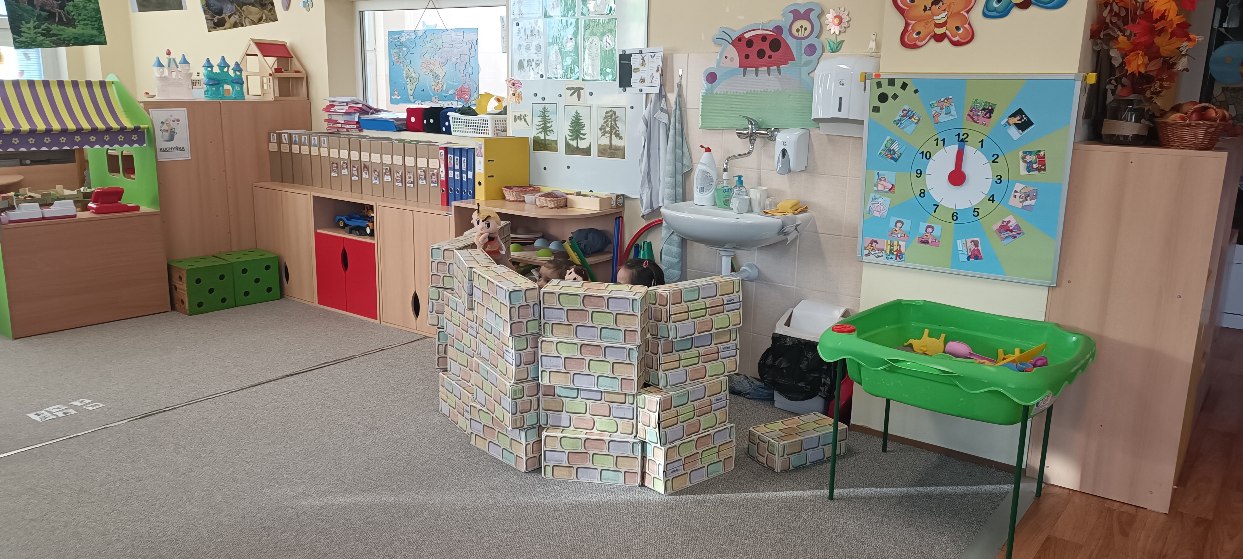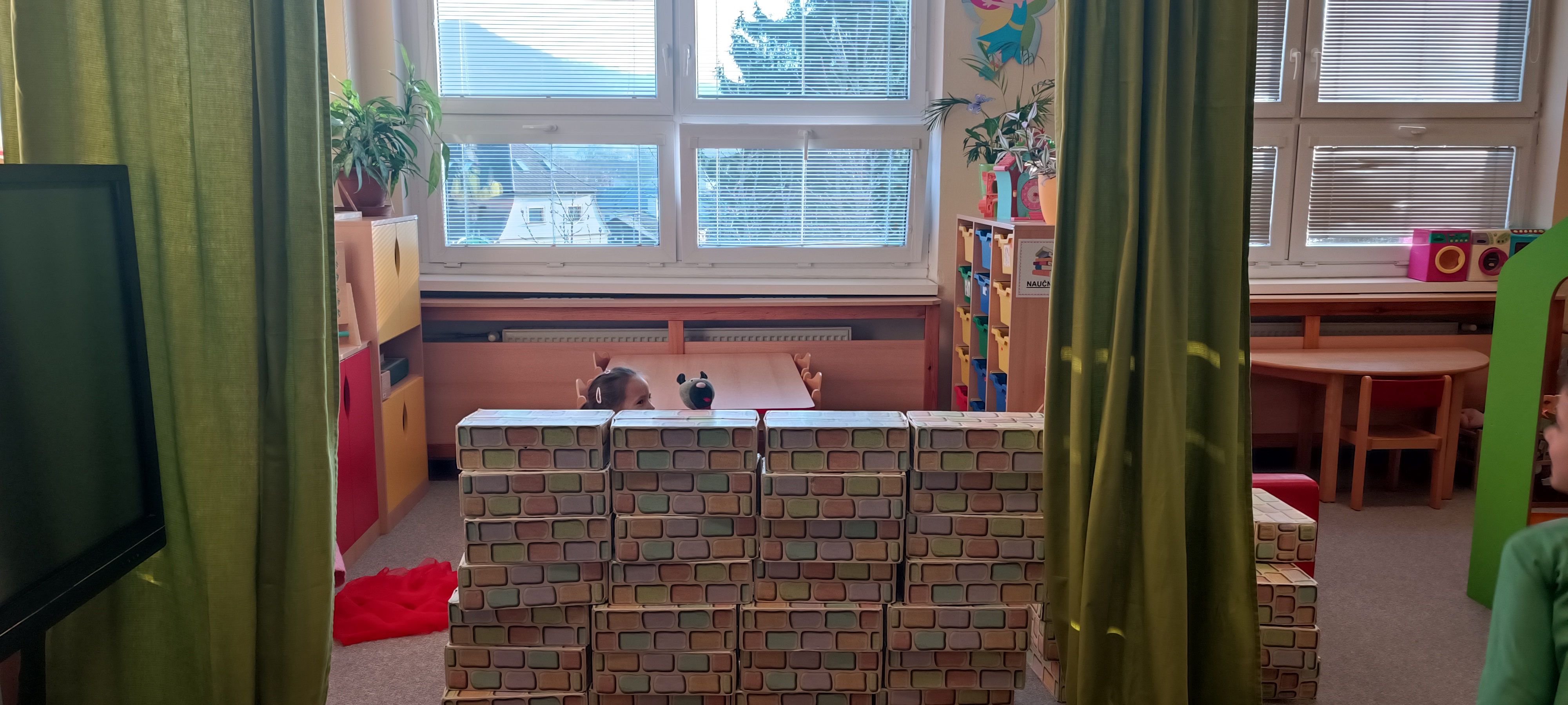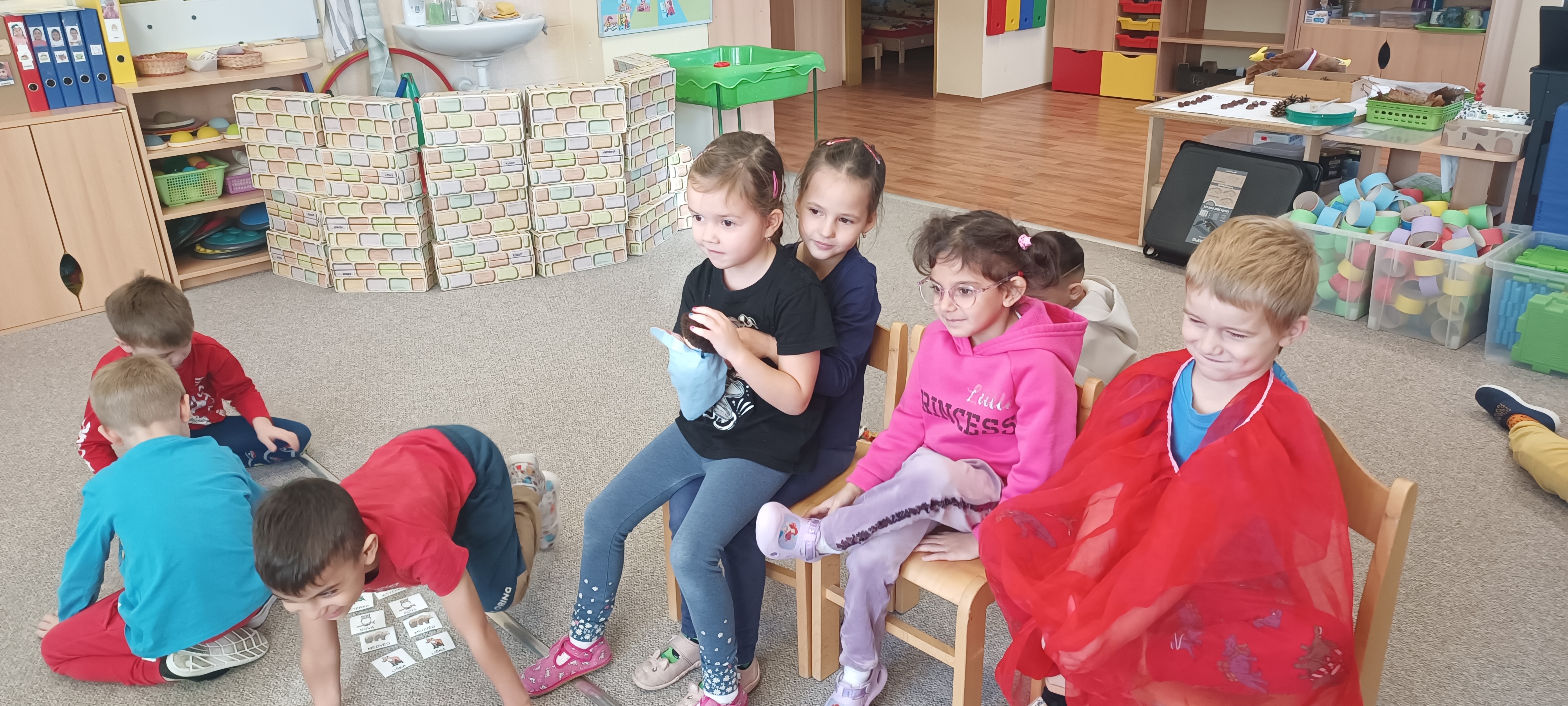 V našem divadélku si hrajeme pohádky o zvířátkách - kluci hrají holčičkám a ony pak klukům.