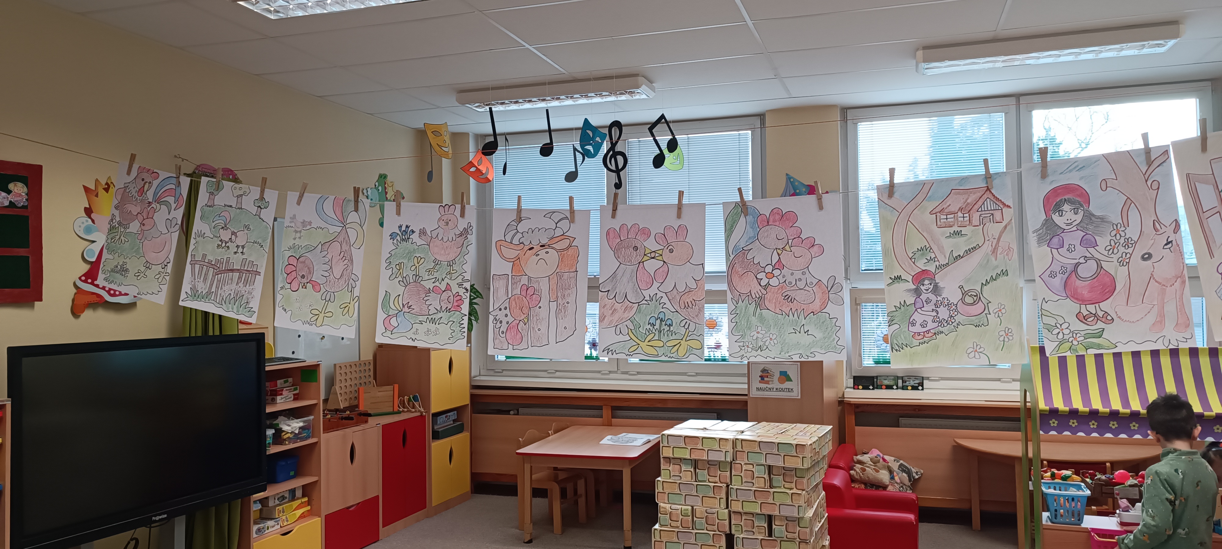 Ve středu jsme si zahráli pohádku O kohoutkovi a slepičce. Nelíbilo se nám, že slepička musela o pomoc pro svého