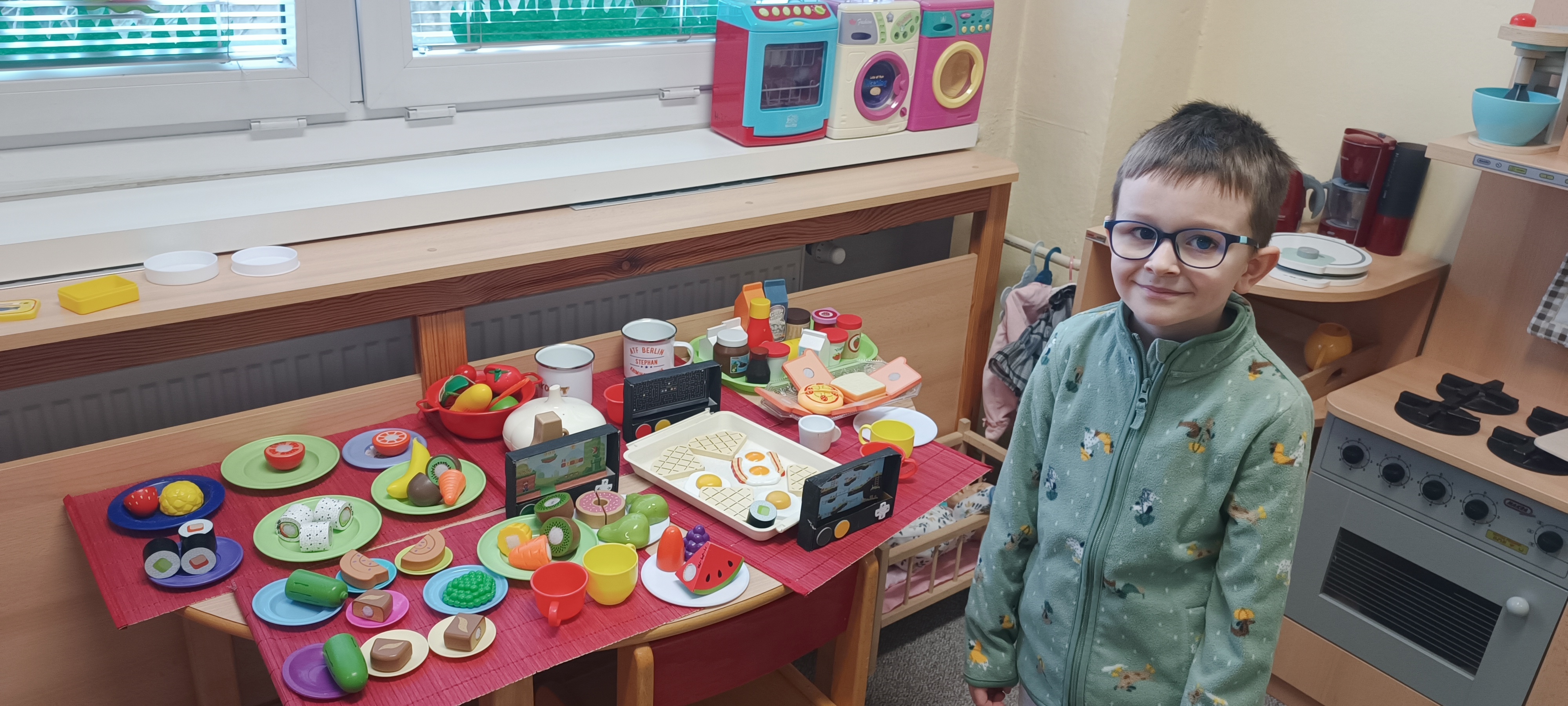 Zahráli jsme si pohádku Hrnečku vař - o tom, jak maminka zapomněla, jak hrneček "vypnout" a jak se všude valila kaše.