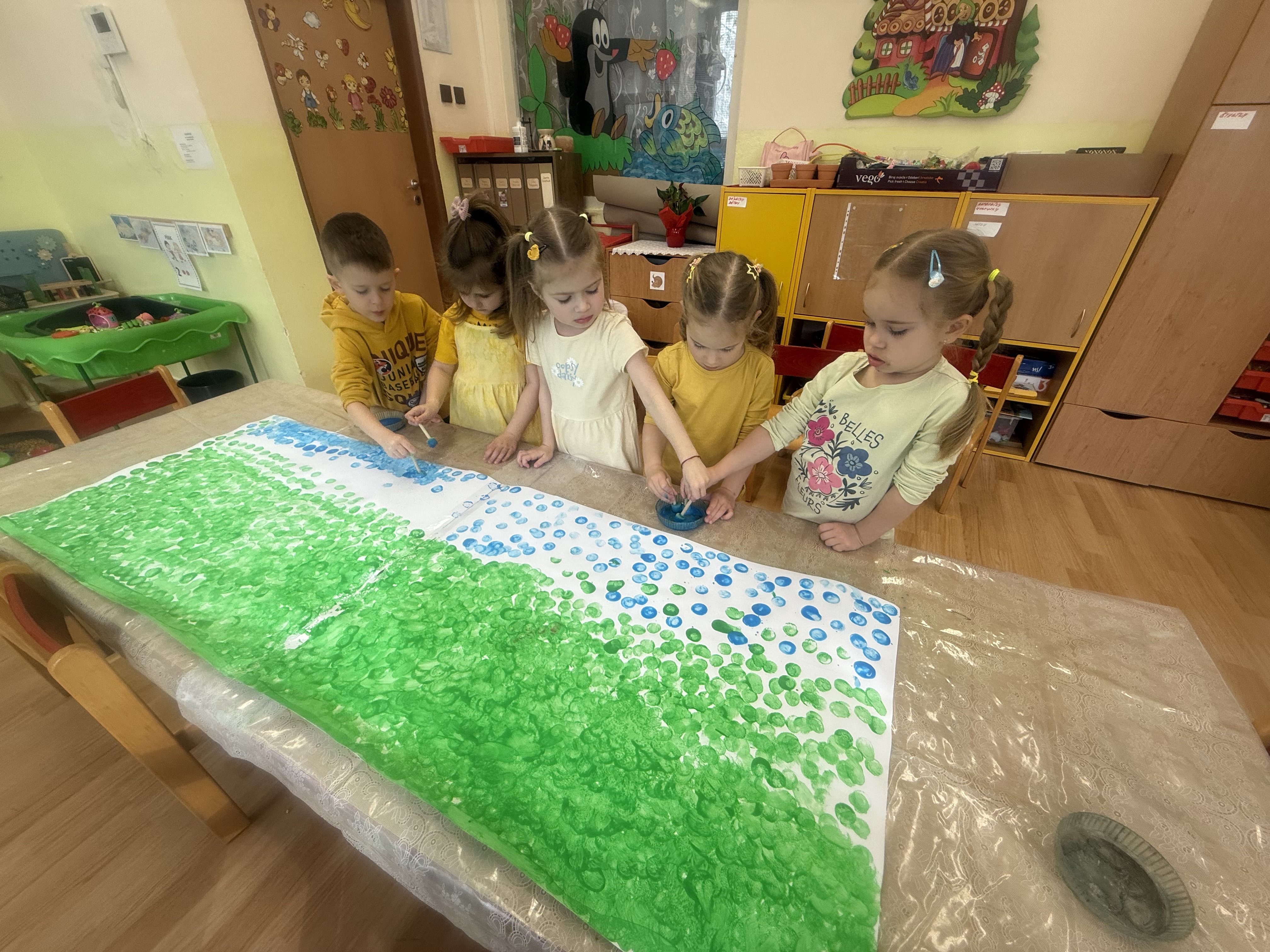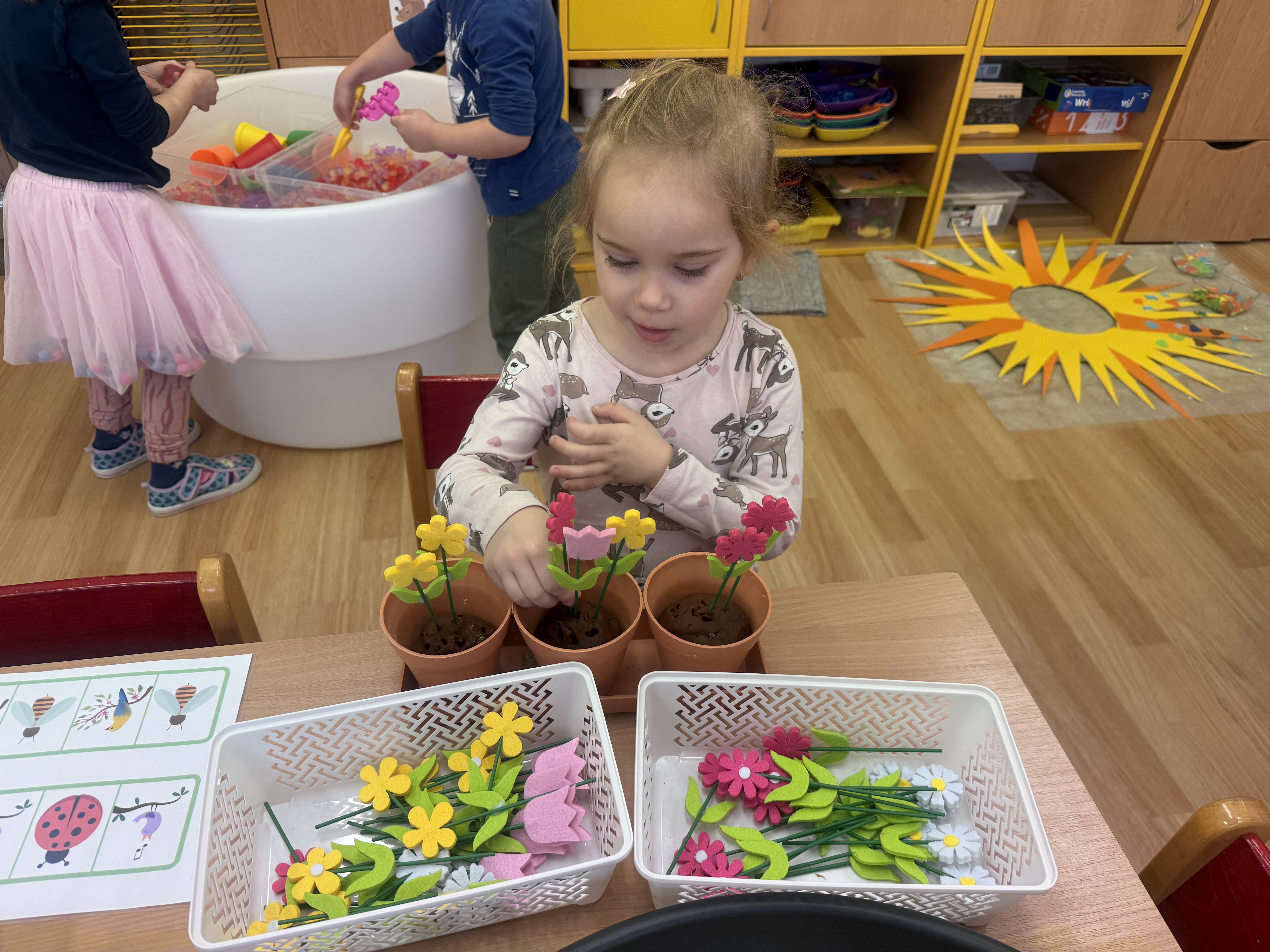 Společně s dětmi plánujeme, co všechno potřebujeme prozkoumat. Jaro jsme probouzeli pohádkou Jak sluníčko hledalo jaro.Společně jsme si naplánovali, co potřebujeme prozkoumat, co už o jaru víme a co ještě ne.Vyprávěli jsme si o předjaří a zjistili jsme jak moc je pro nás,pro rostliny,zvířata i hmyz slunce důležité.Ve středu jsme se oblékli do sluníčkové barvy-měli jsme žlutý den.Naučili jsme se novou písničku Už je březen.Sluníčka jsme nakreslili křídami i před naší školku.Venku jsme pozorovali jak se budí jaro v přírodě. Před školkou nám jaro probudilo první sněženky.S Jůlinkou jsme oslavili narozeniny.