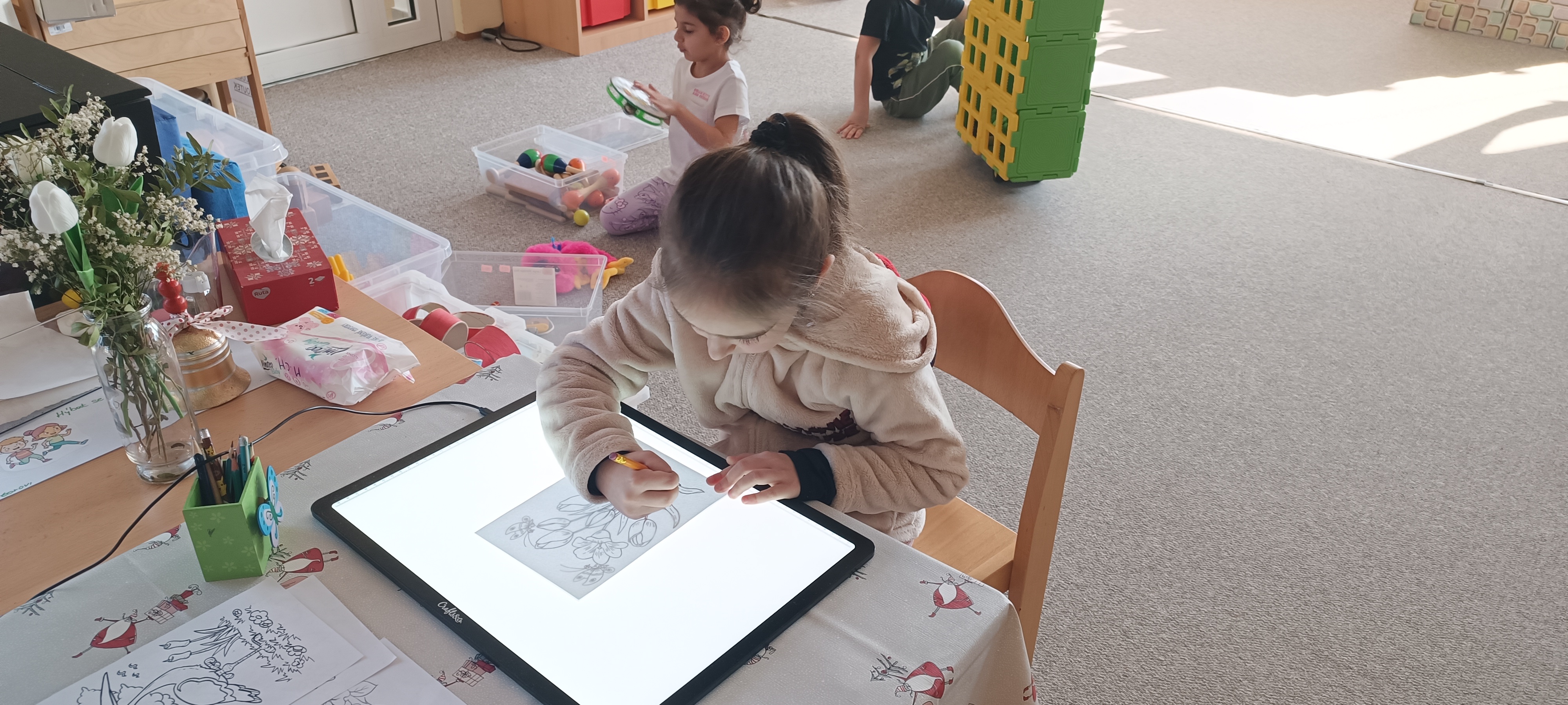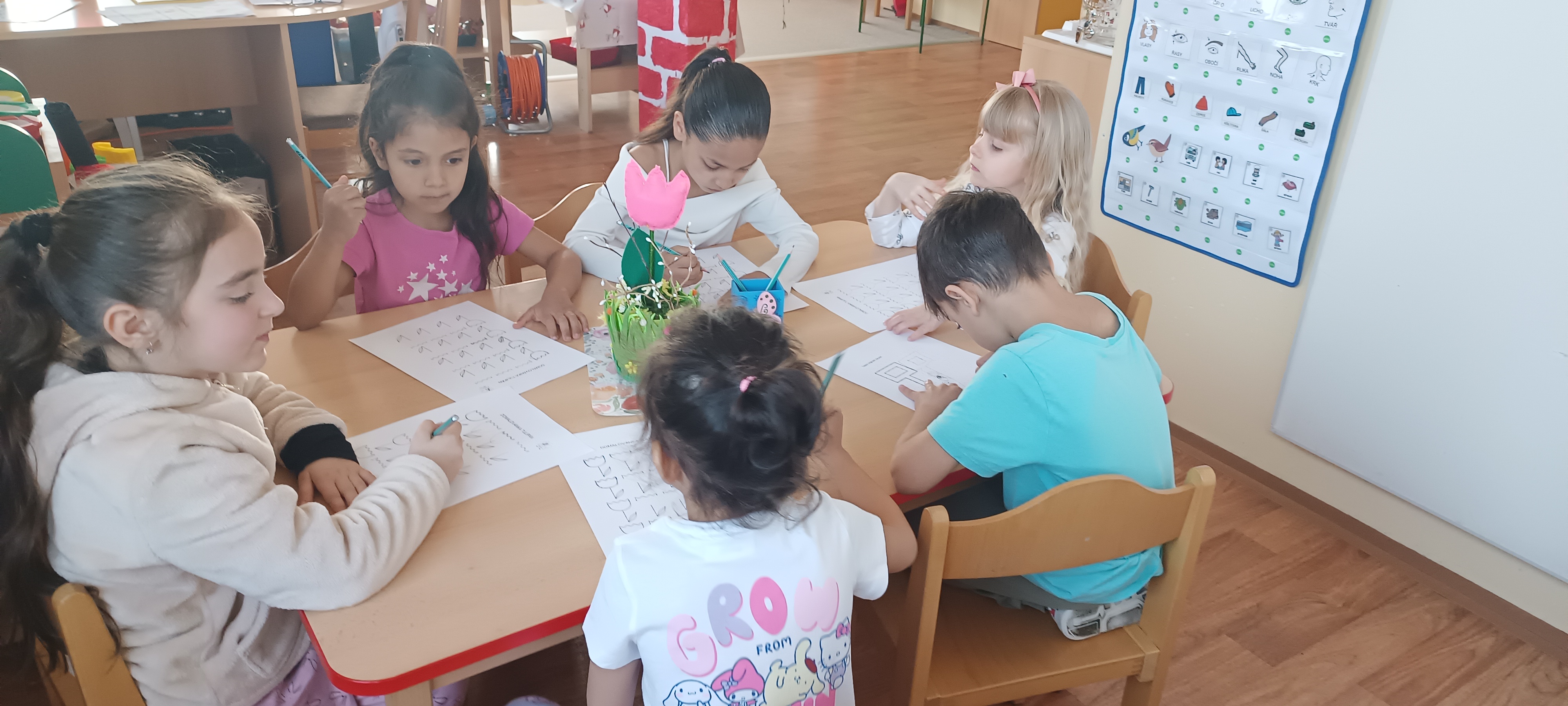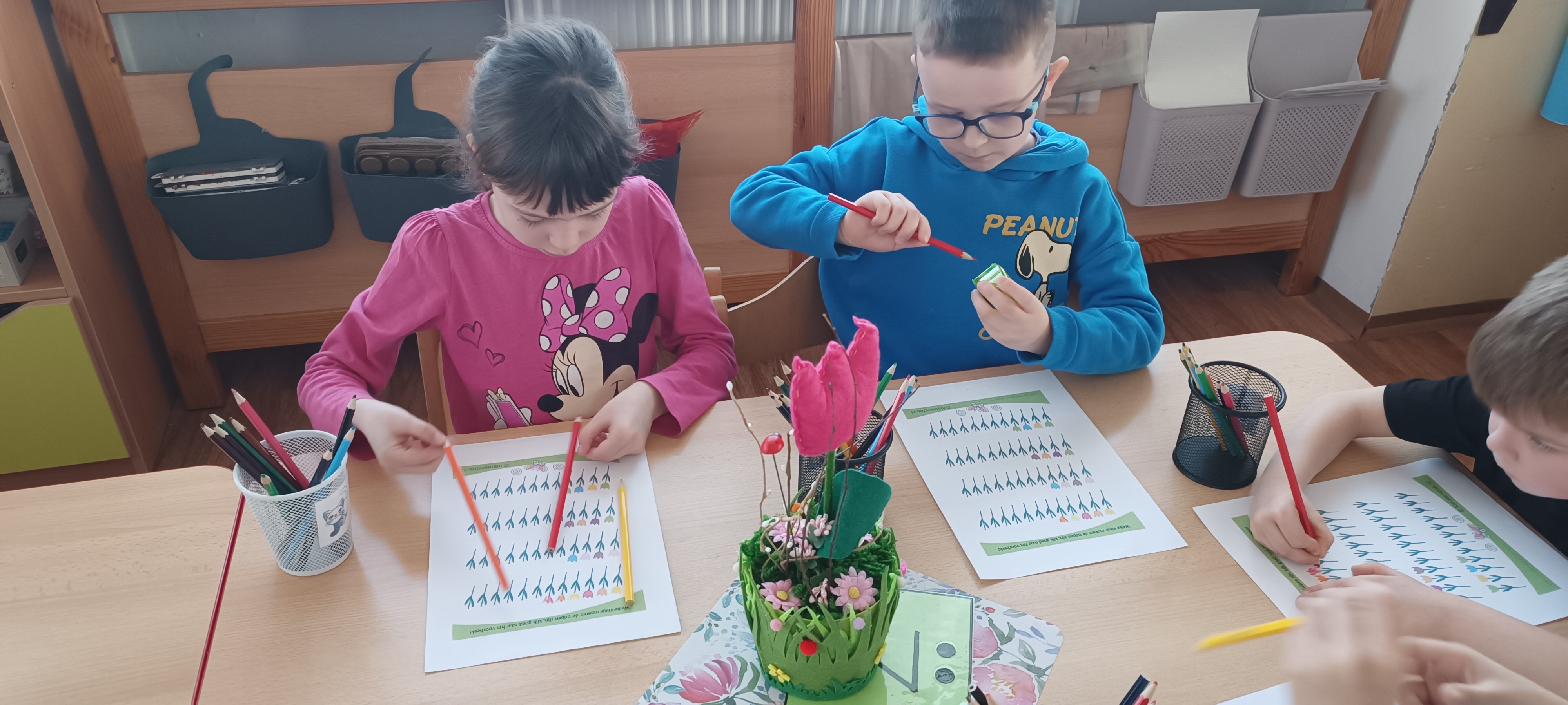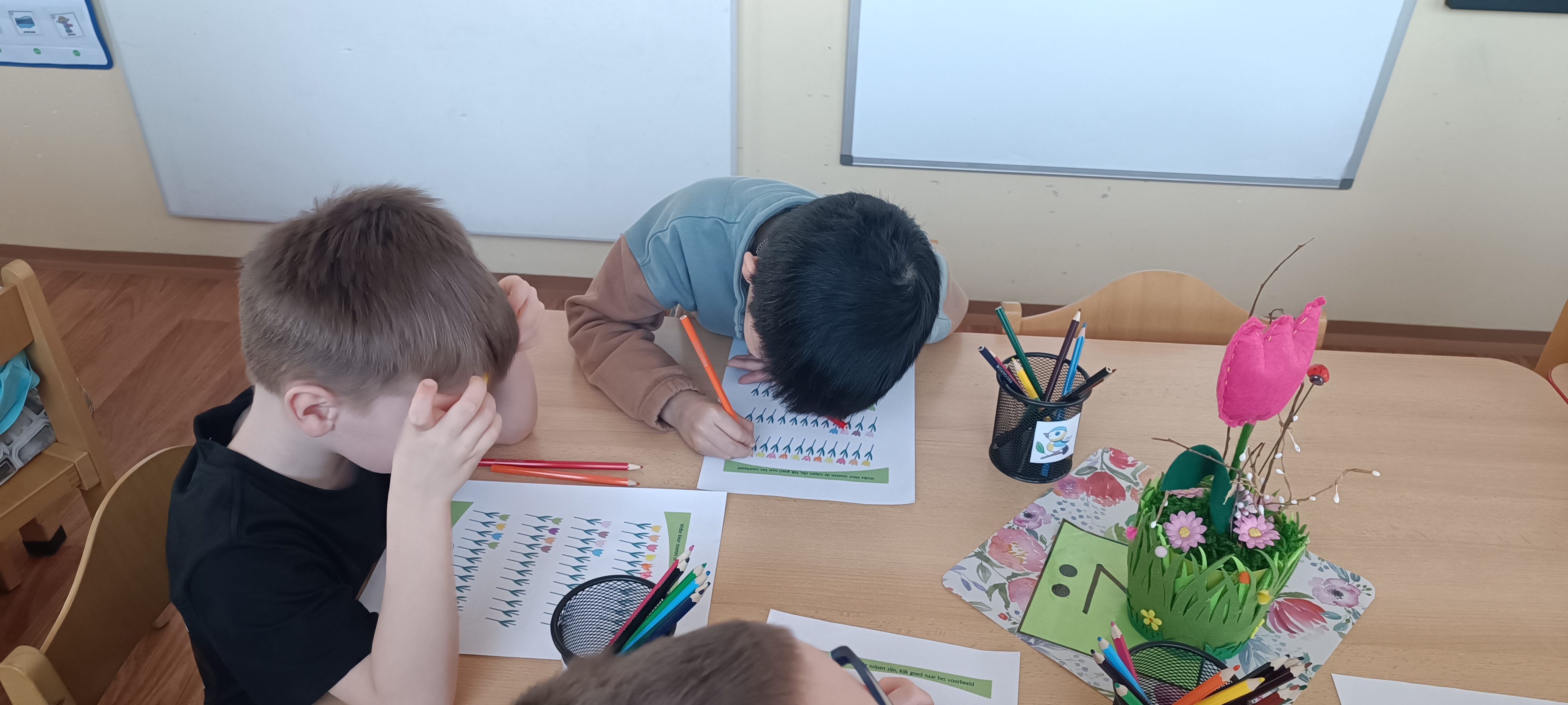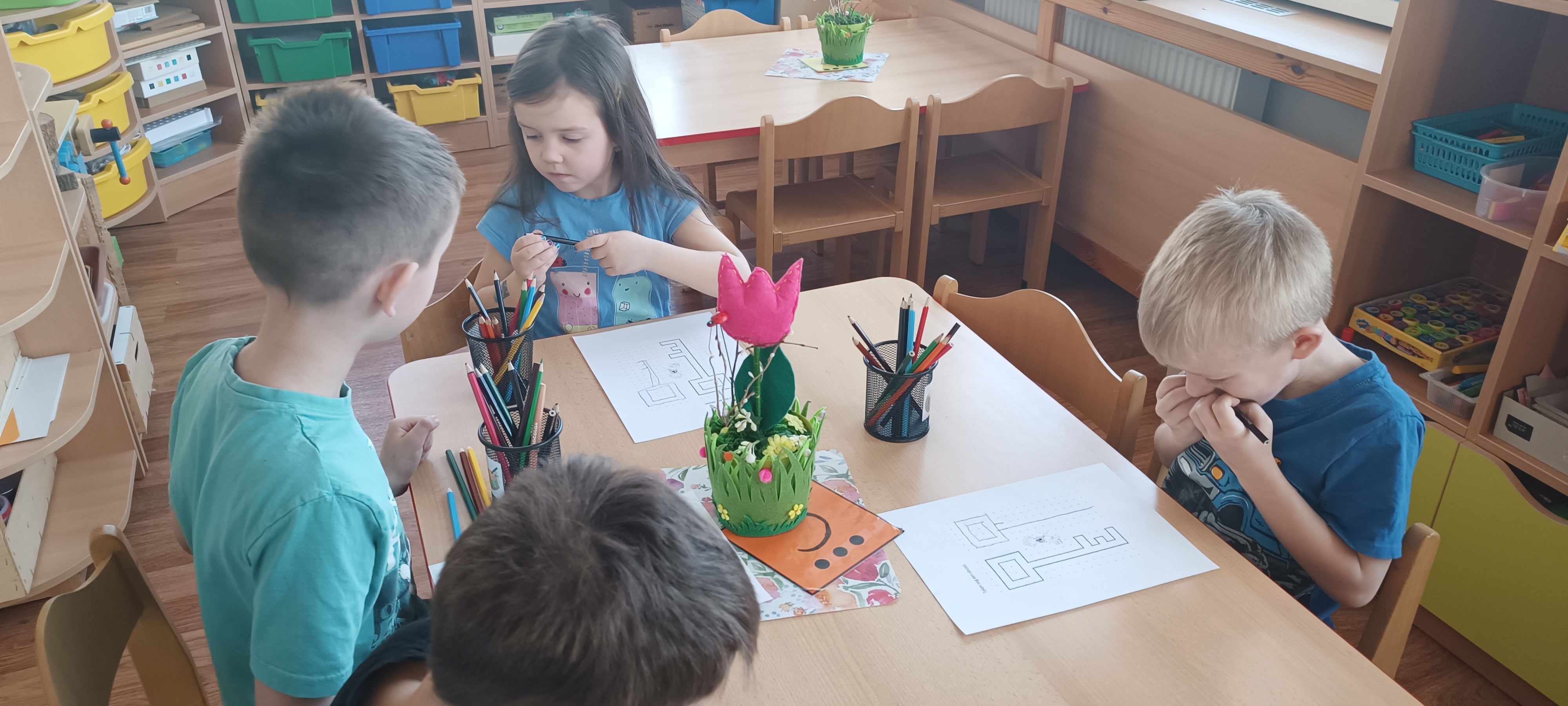 Malujeme jaro, zpíváme o něm a také jsme si vyšli k vykotlanému dubu, kde jsme na podzim zamkli les,
