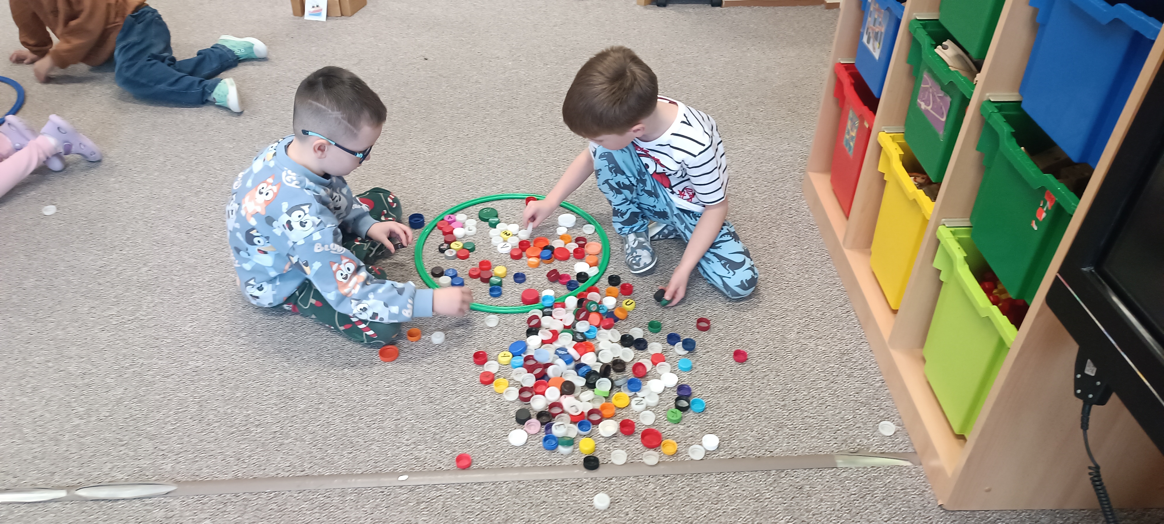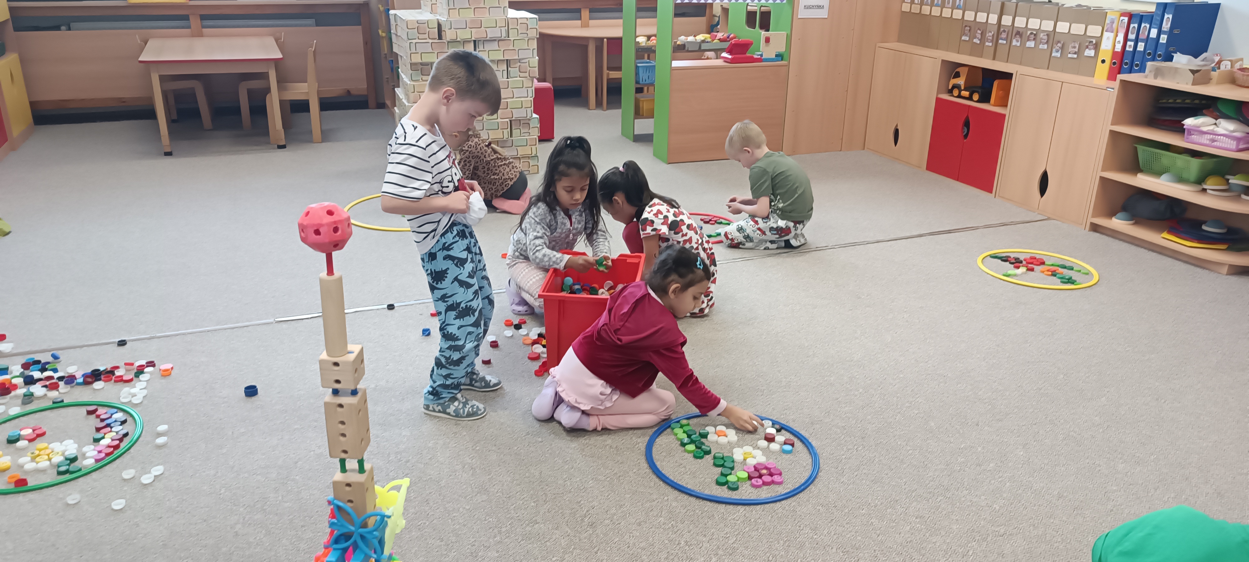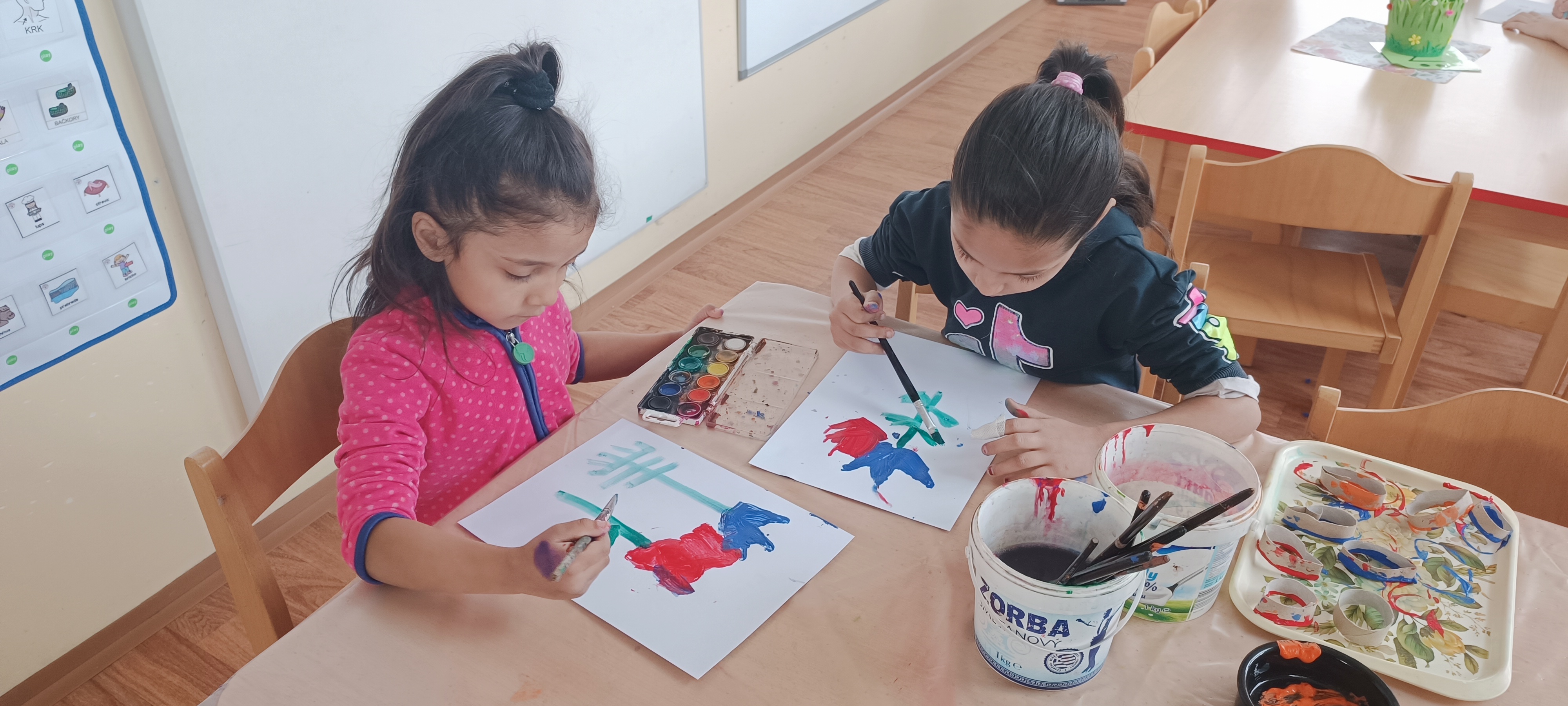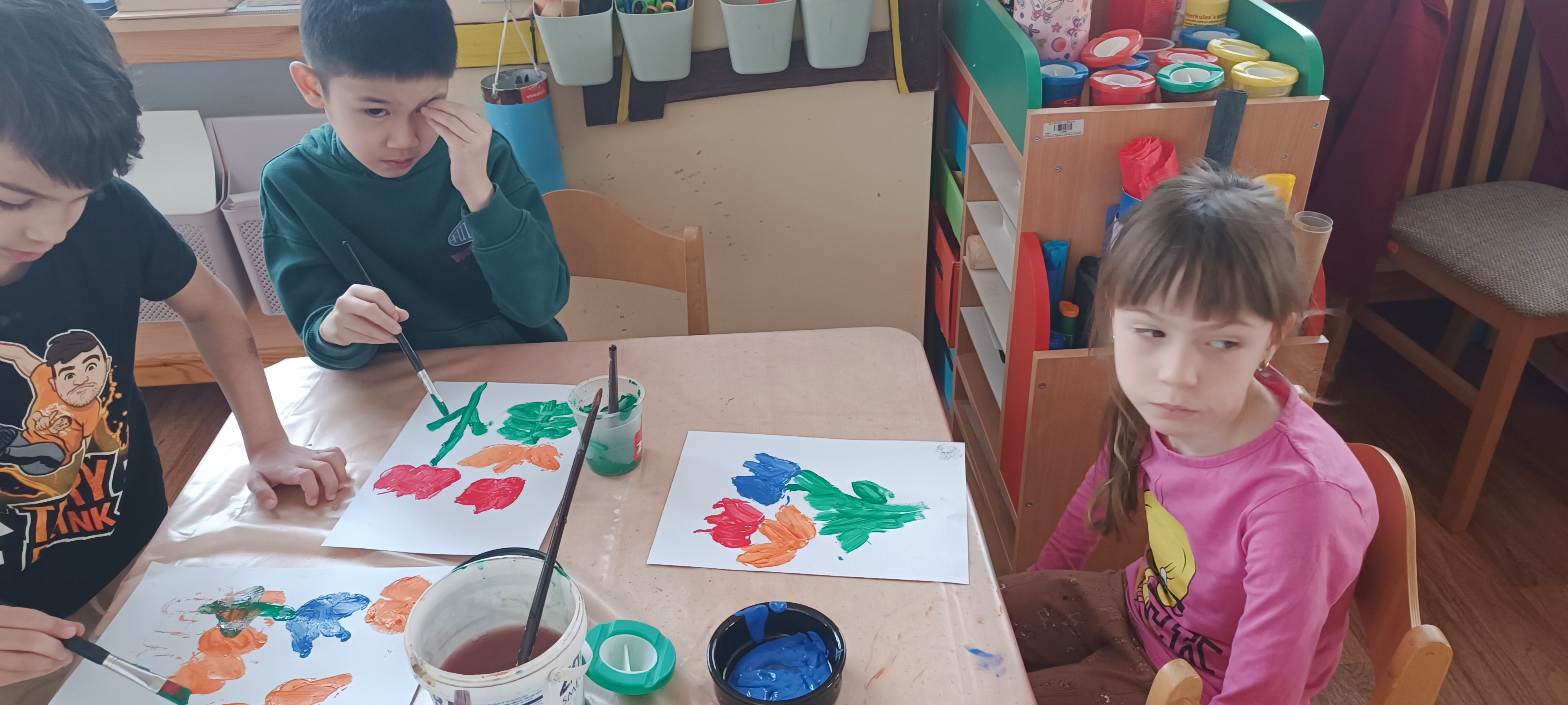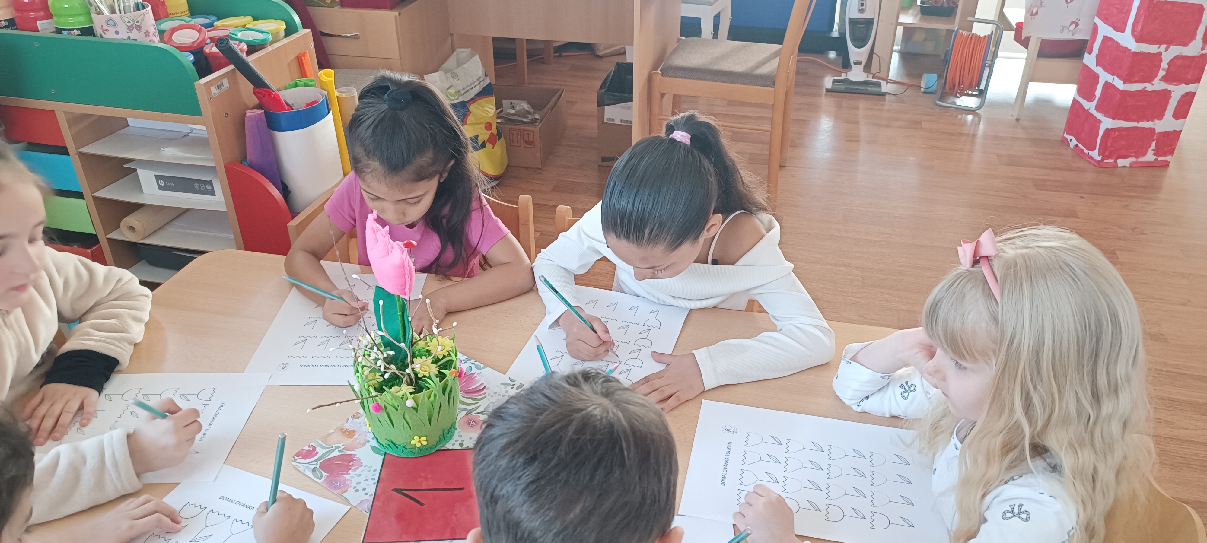 Malujeme jaro, zpíváme o něm a také jsme si vyšli k vykotlanému dubu, kde jsme na podzim zamkli les,