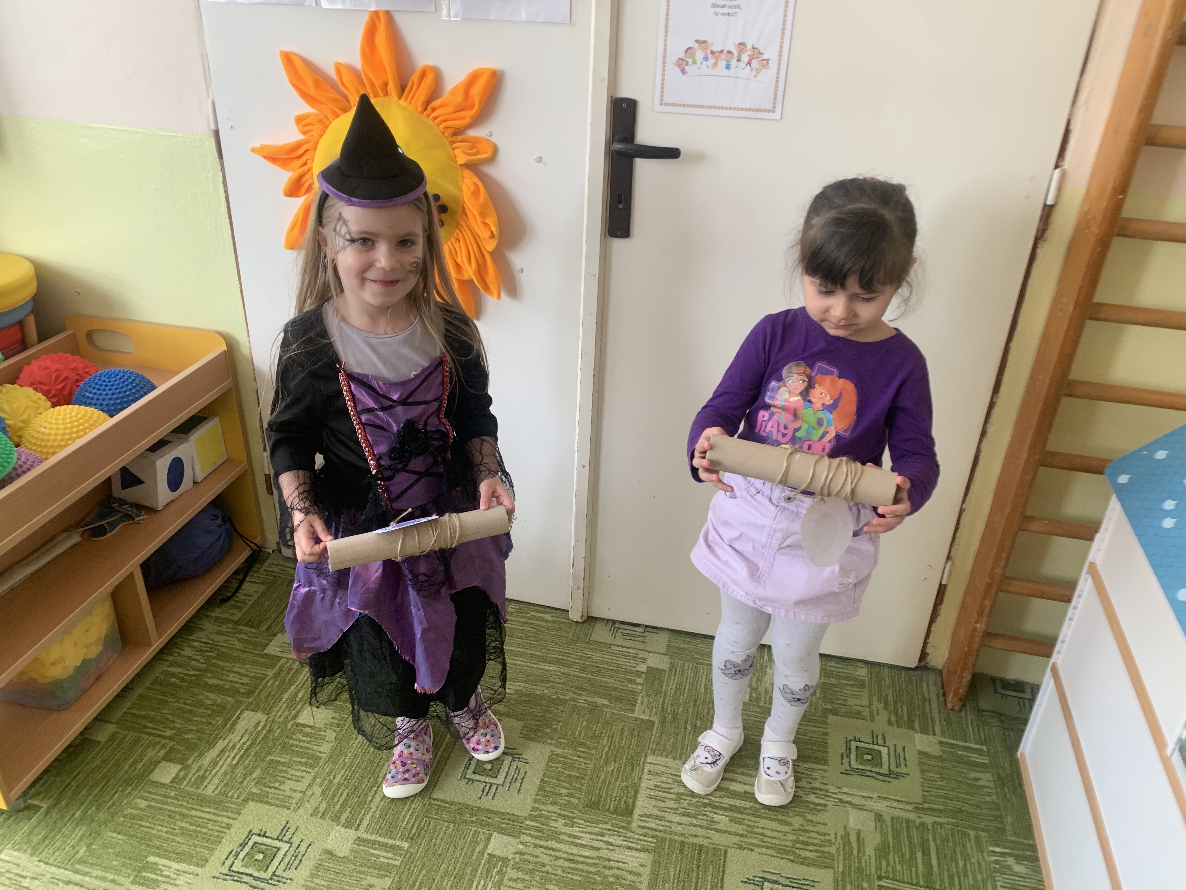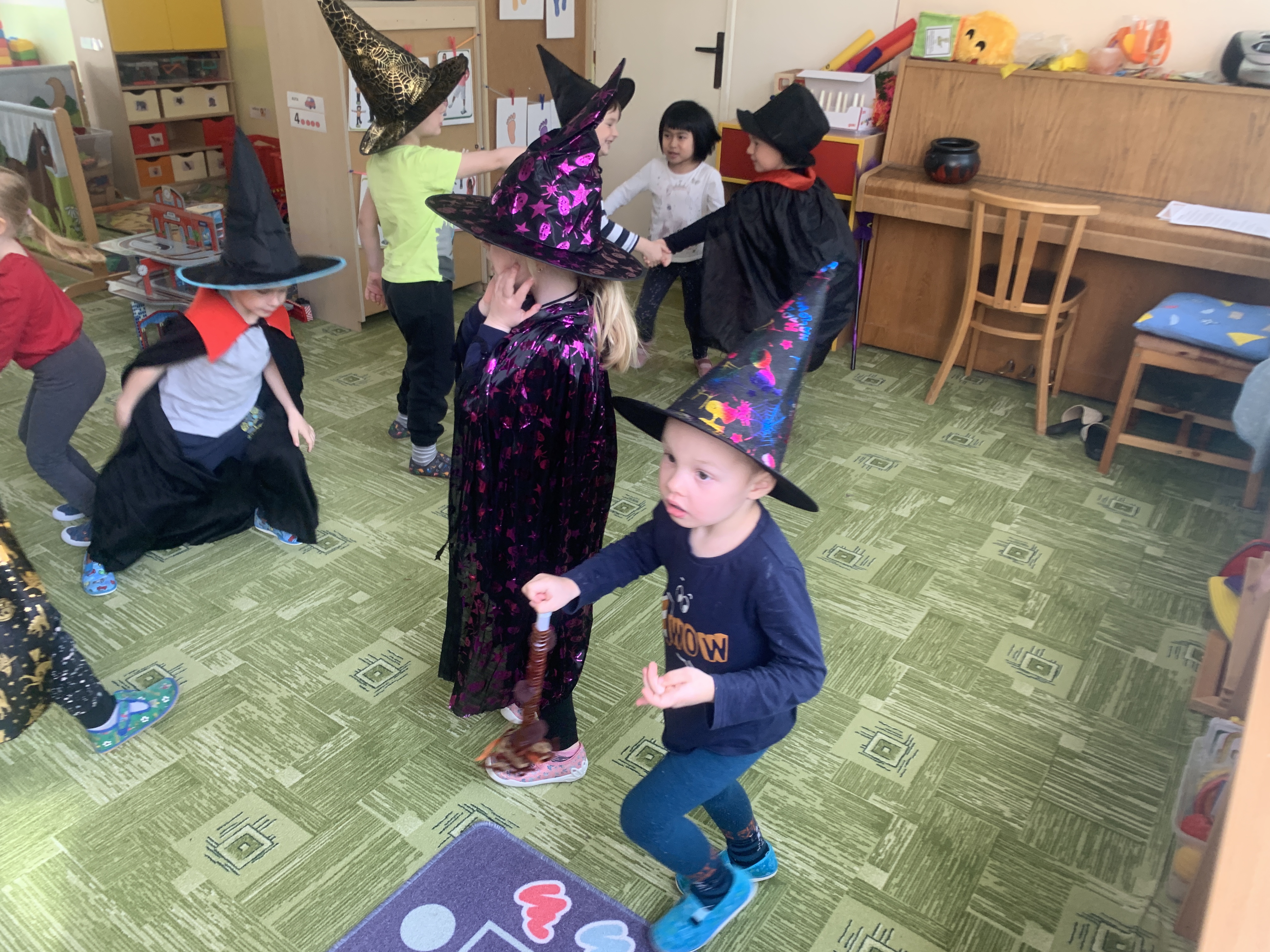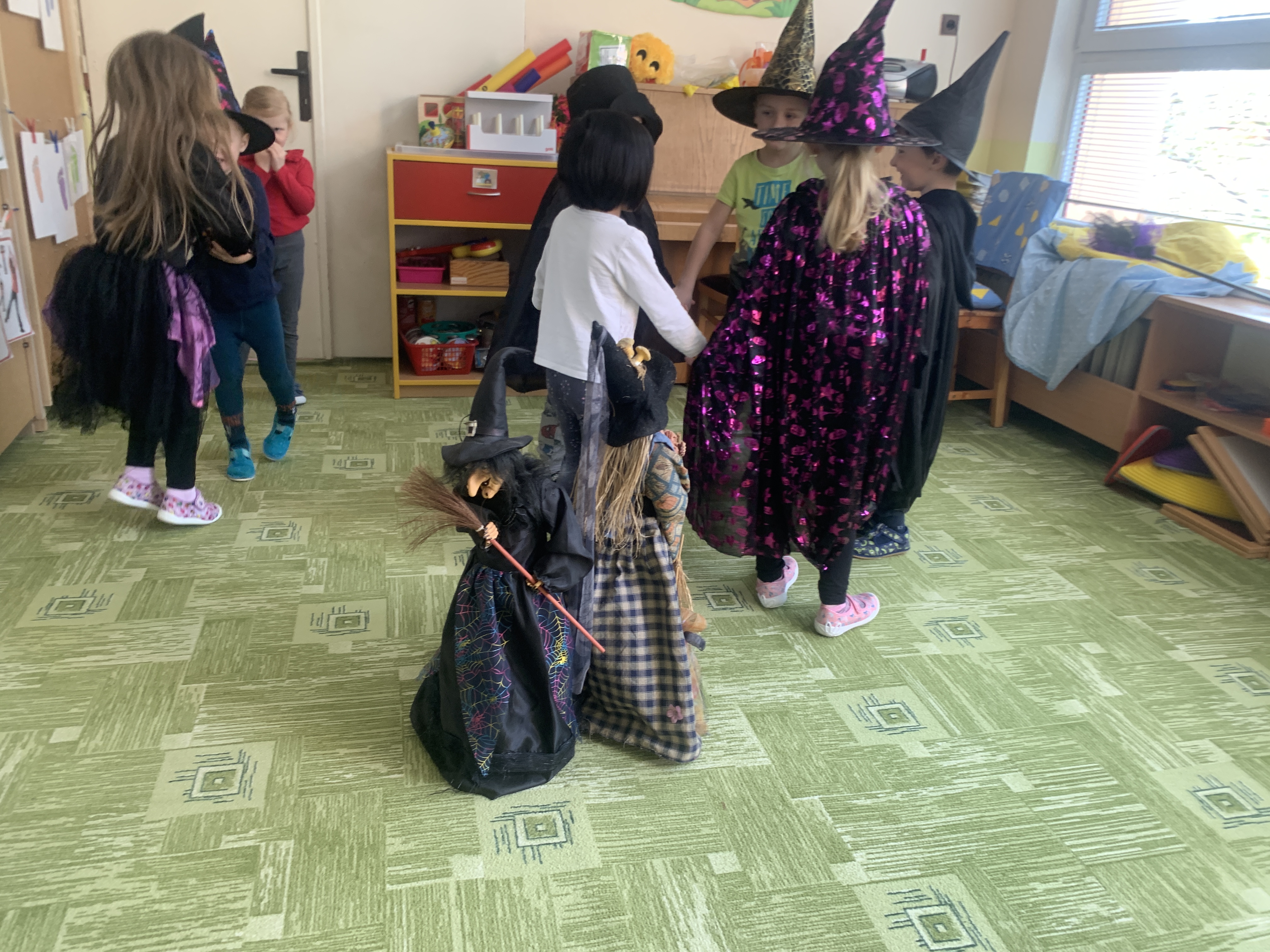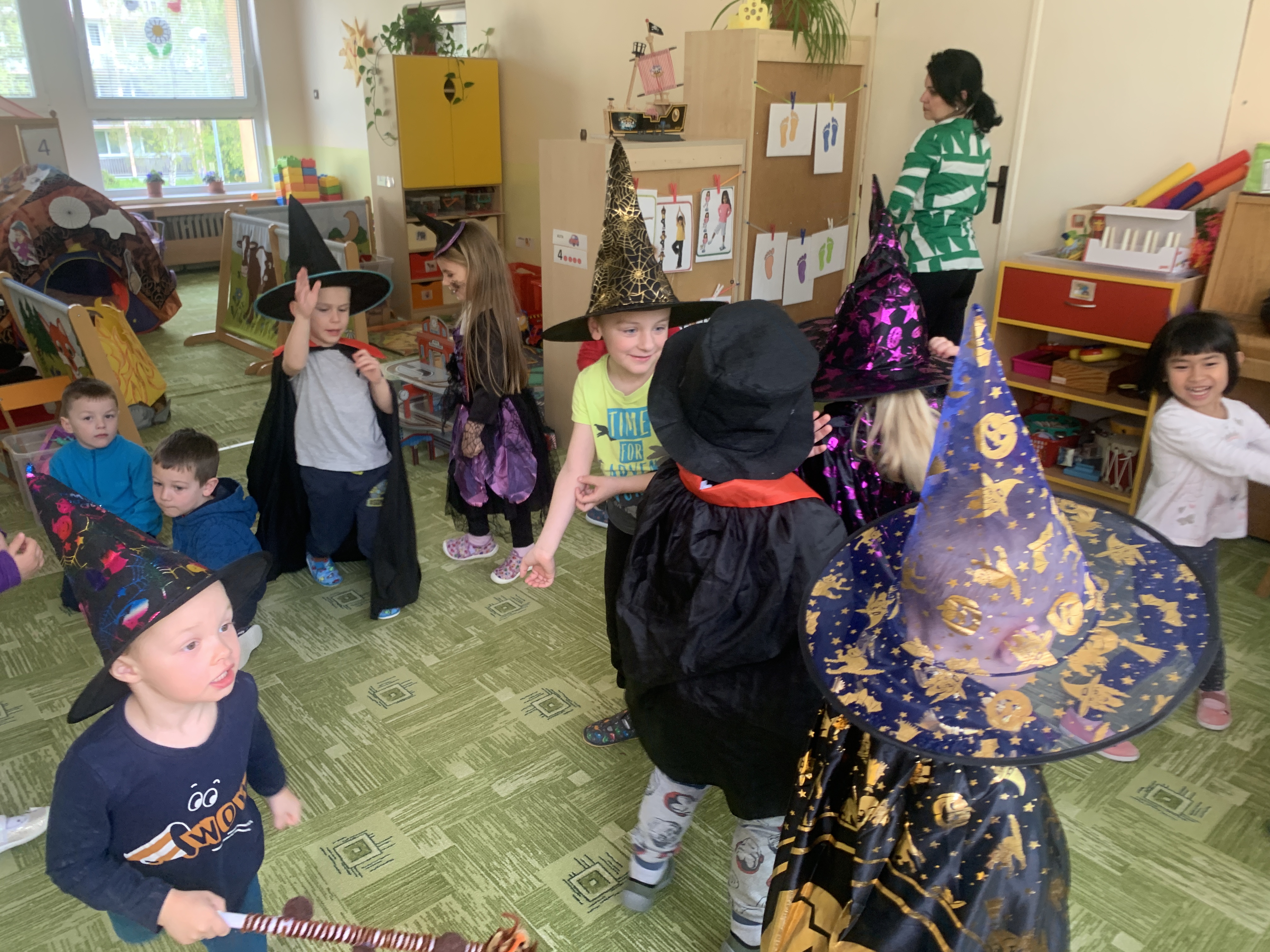 Celý týden si vyprávíme o tradici svátku čarodějnic. Hrajeme si na čarodějnice. Pleteme pavučiny, zdobíme pavouky, vyrábíme čarodějnice z látek. Ve třídě máme kouzelné koření a sušené bylinky. Každý den čarujeme různá kouzla. Dnes jsme si užili čarodějnický rej v maskách s tancem a soutěžemi.
