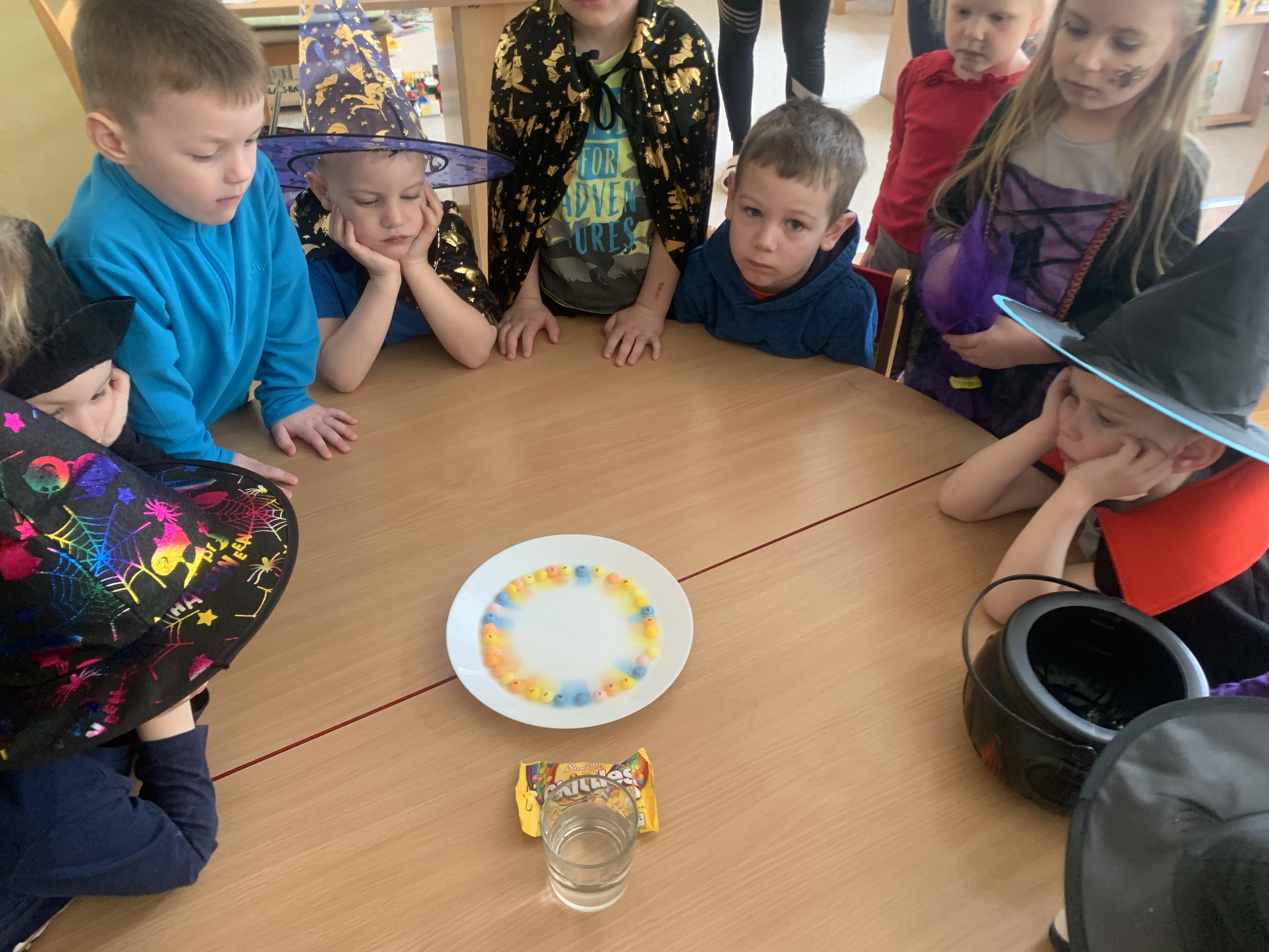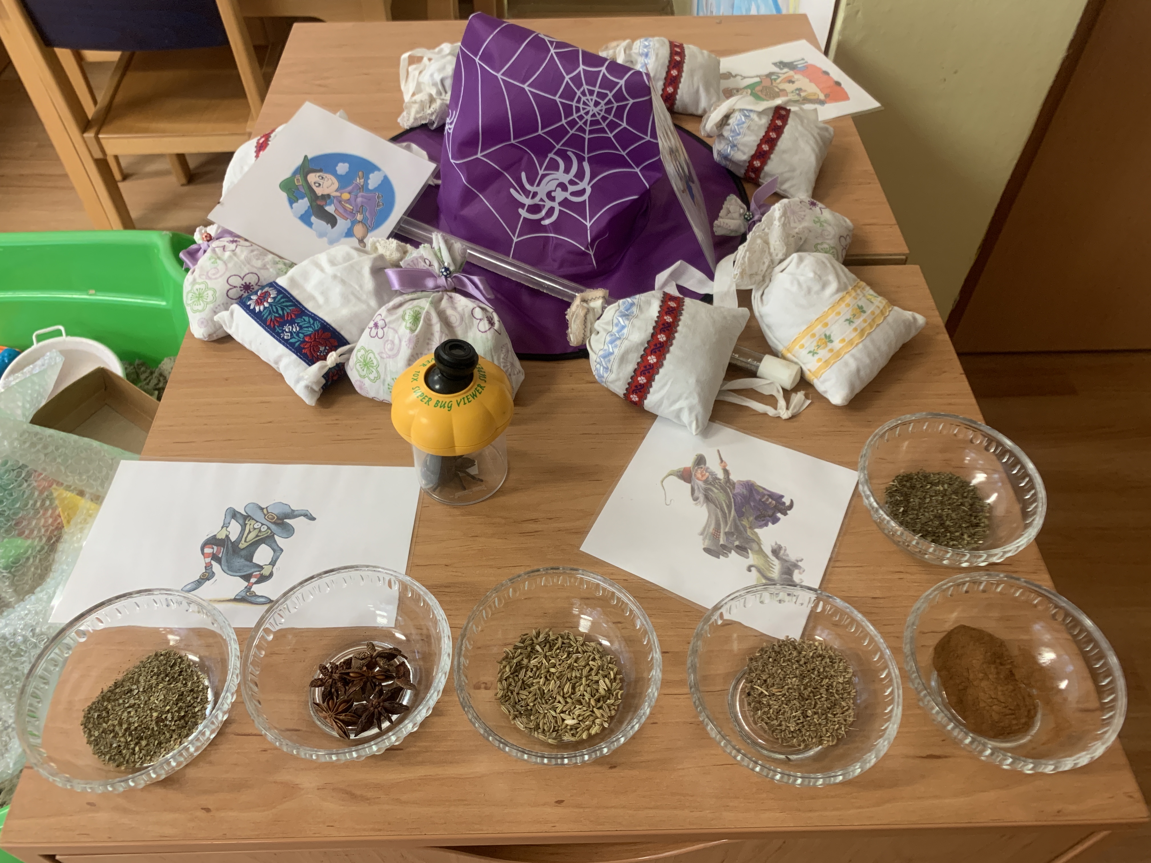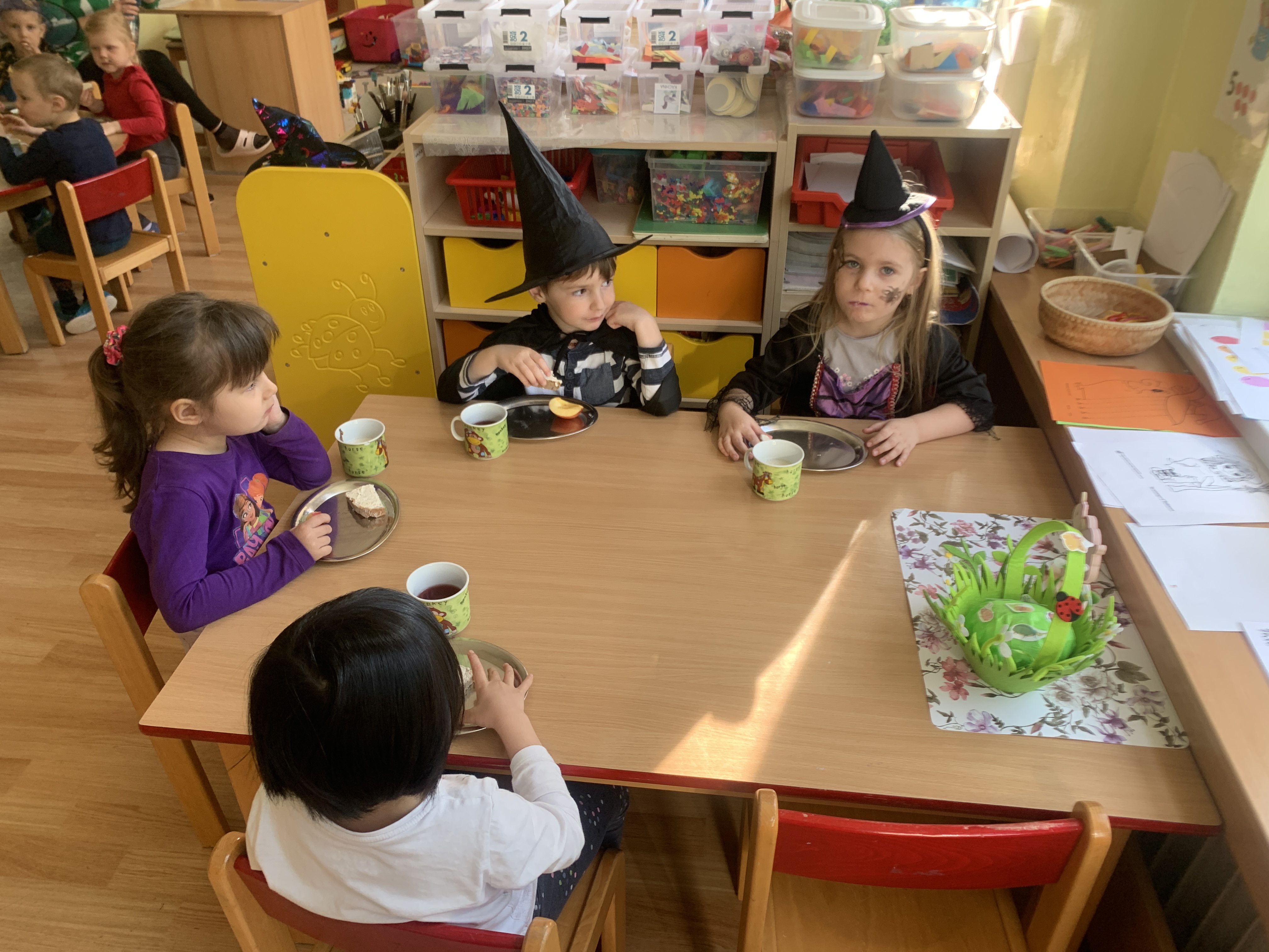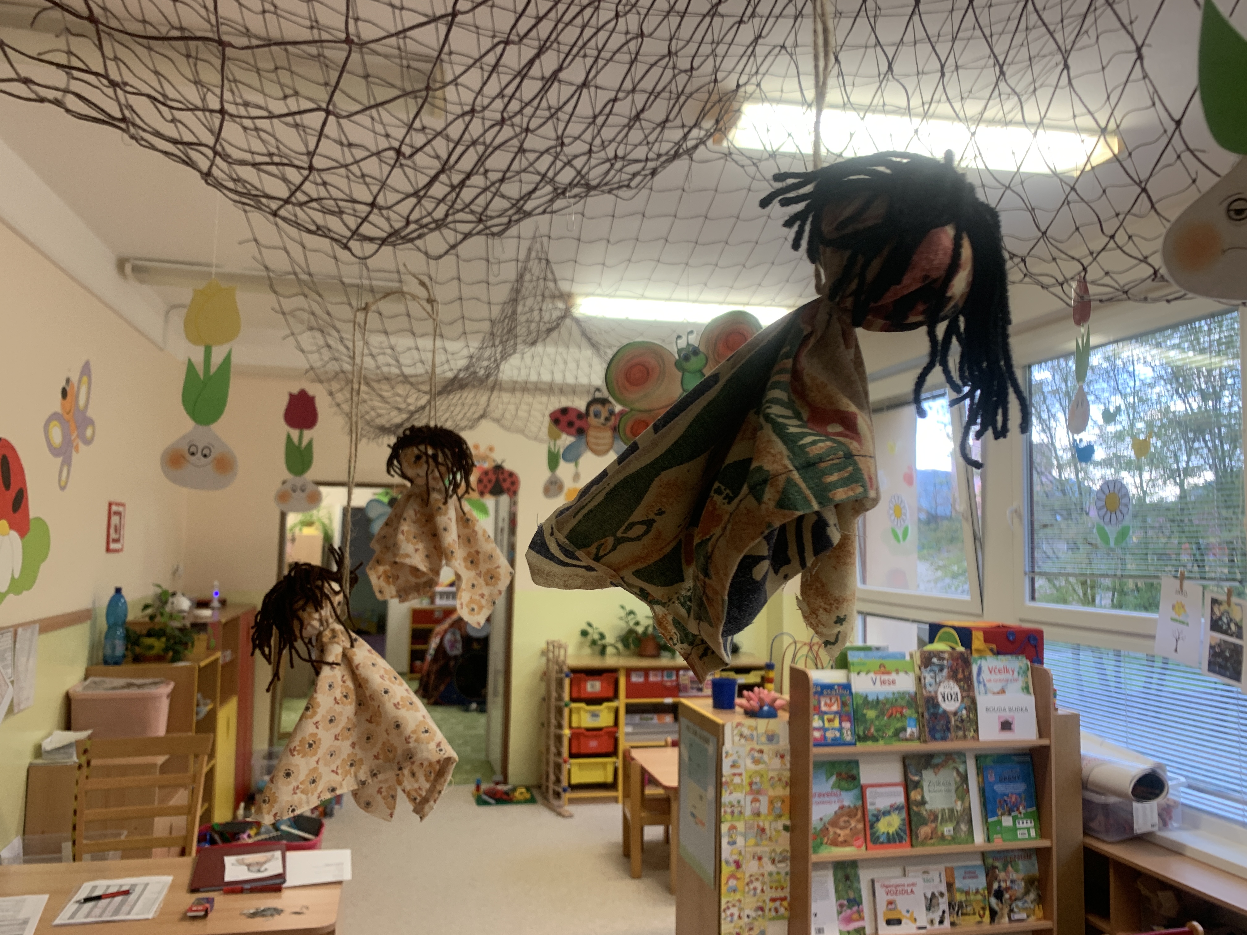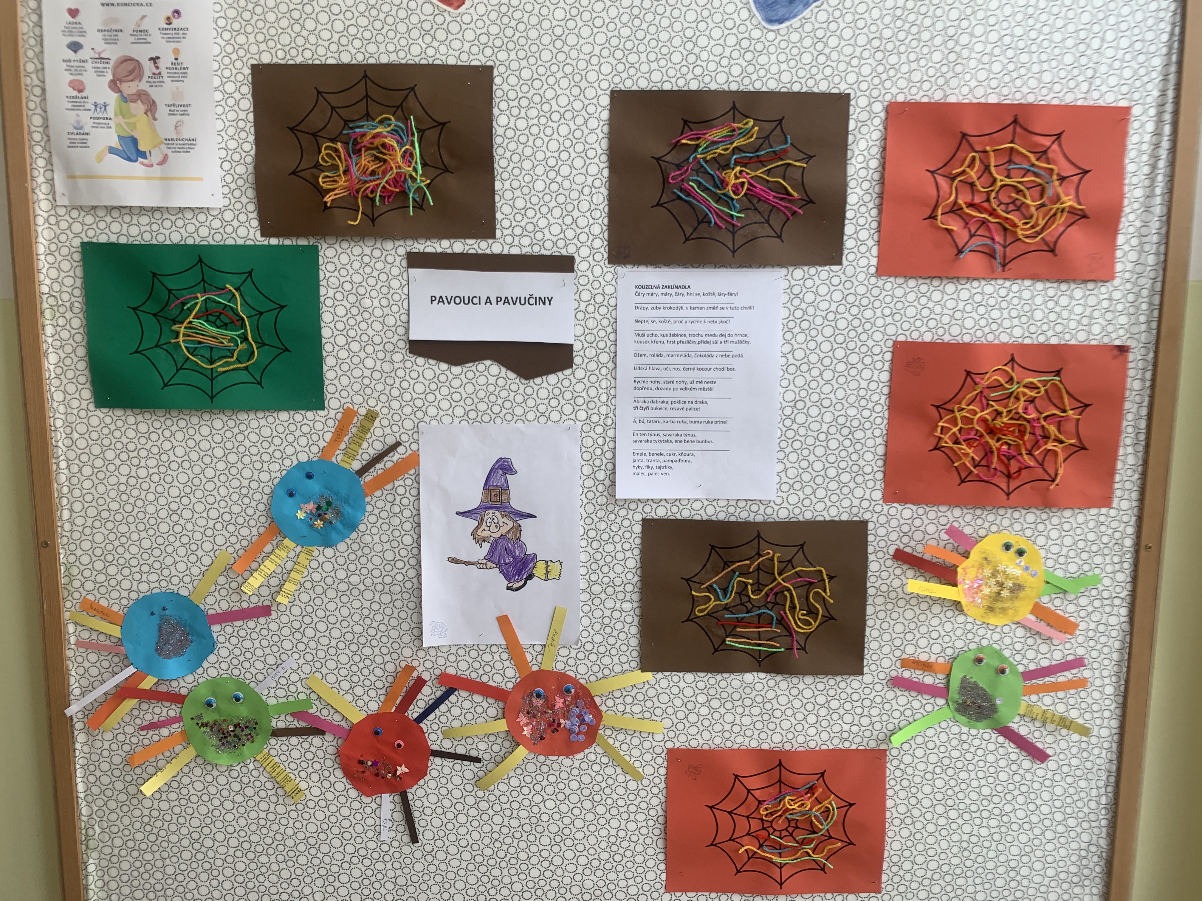 Celý týden si vyprávíme o tradici svátku čarodějnic. Hrajeme si na čarodějnice. Pleteme pavučiny, zdobíme pavouky, vyrábíme čarodějnice z látek. Ve třídě máme kouzelné koření a sušené bylinky. Každý den čarujeme různá kouzla. Dnes jsme si užili čarodějnický rej v maskách s tancem a soutěžemi.