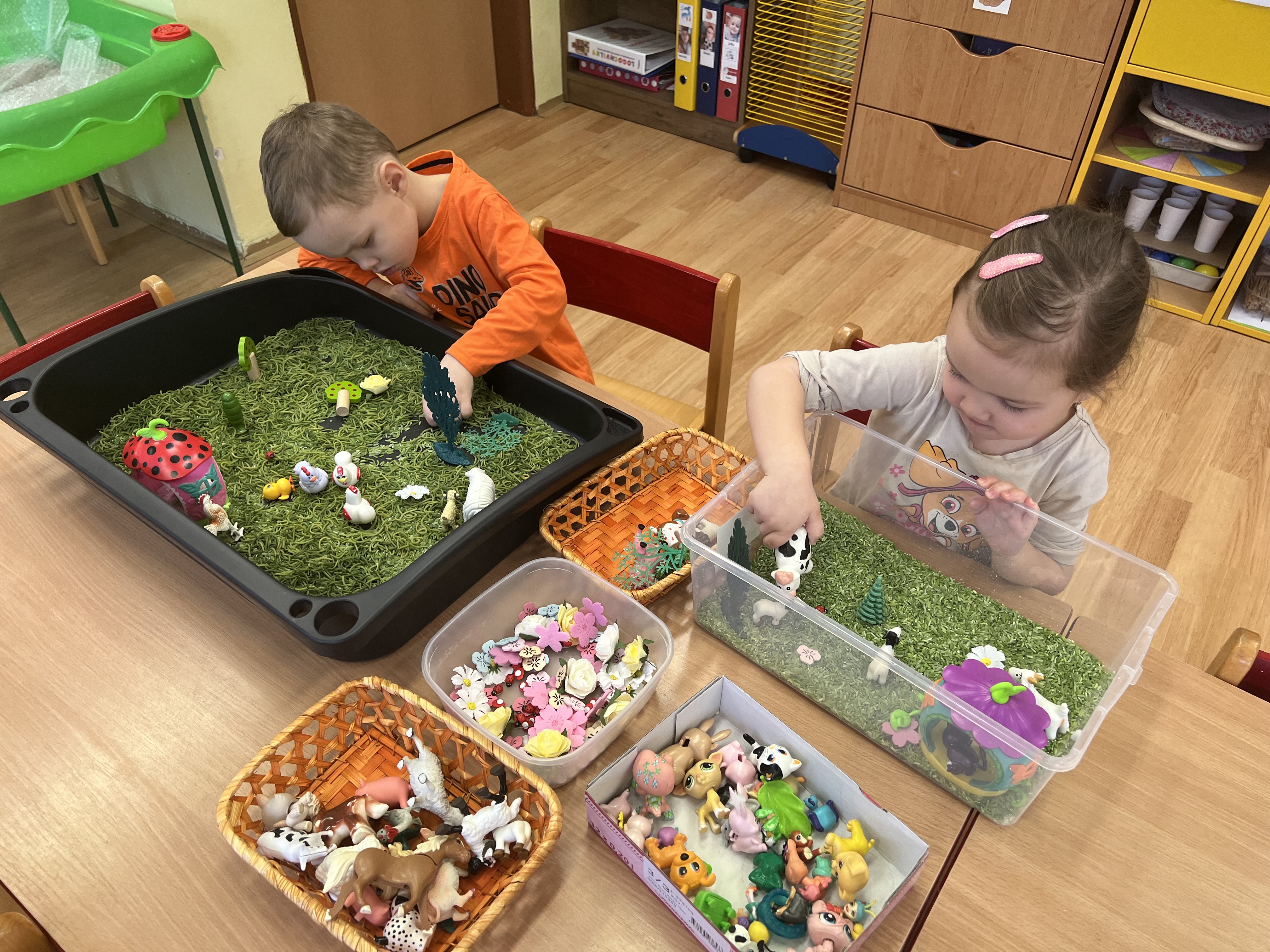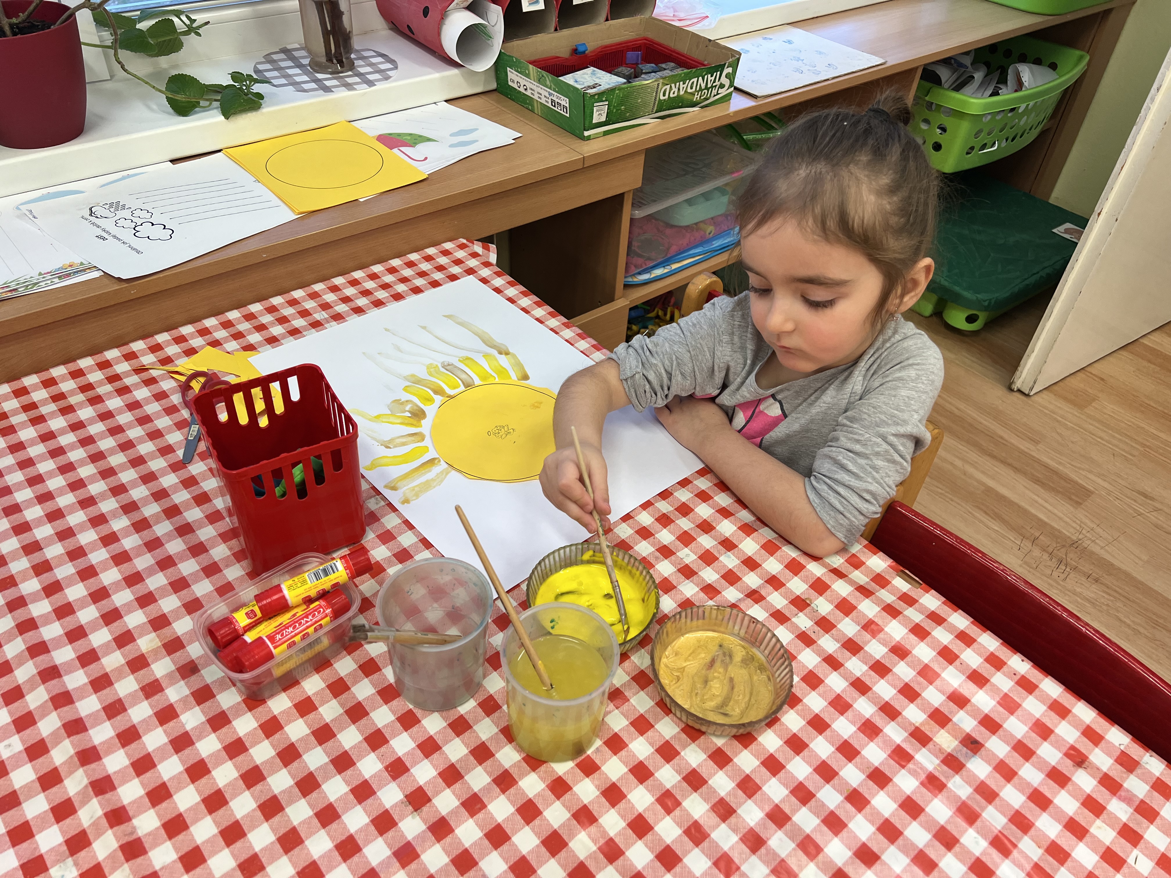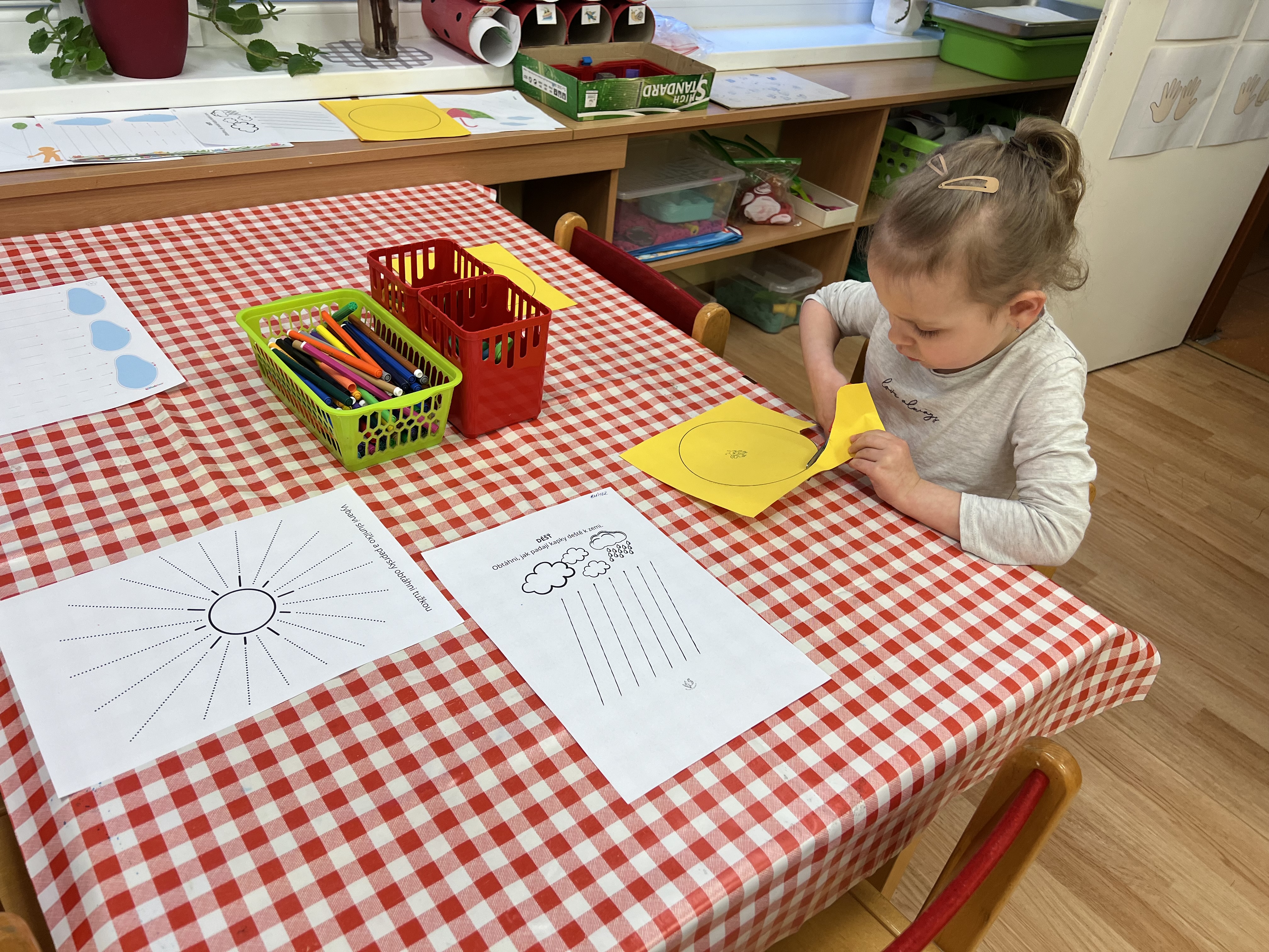 Tímto týdnem nás provázela pohádka O sluníčku, které plakalo. Sluníčko dlouho-celou zimu spalo, a tak zapomnělo, jak jaro vypadá. Naším úkolem bylo mu to ukázat, aby neplakalo a nebylo smutné. Ukázali jsme mu jarní kytičky a jarní počasí. Připomněli jsme sluníčku, co musí na jaře stihnout. Probudit broučky, trávu, stromy, semínka v zemi, a spoustu dalšího. Sluníčko jsme zkusili vystřihnout, nalepit a domalovat mu krásné dlouhé paprsky. V rámci smyslohraní jsme stavěli jarní zahrádky. Děti s rodiči doma vyrobili krásná sluníčka, která nám zdobí školku.